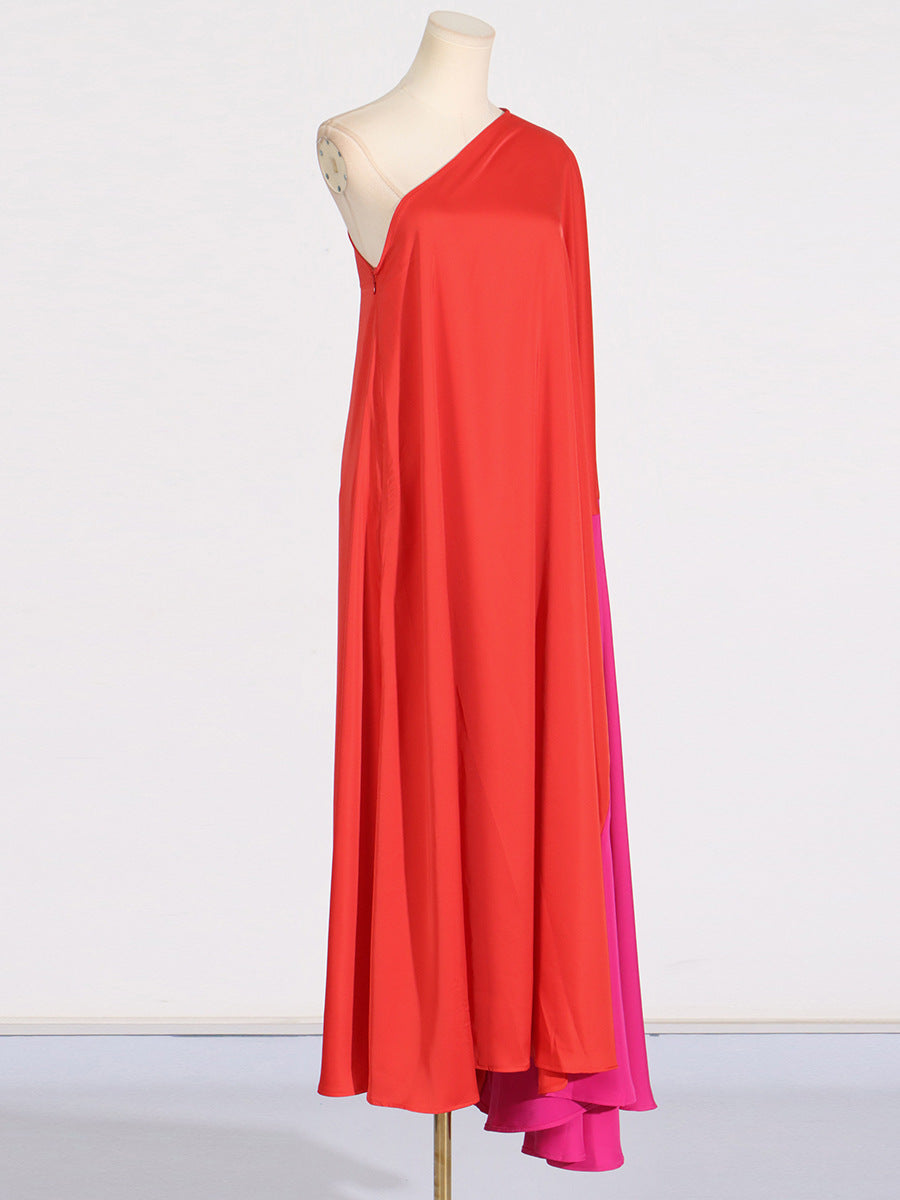 Dadizhimu Elegant Dress 2025 Spring New Slant Shoulder Splicing Colliding Color Niche Personality Loose Body Dress Dress Woman