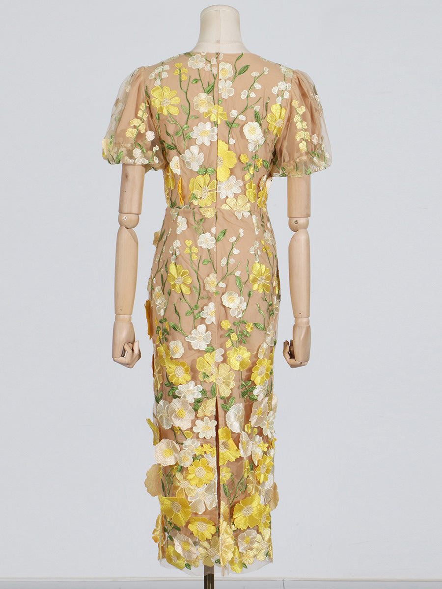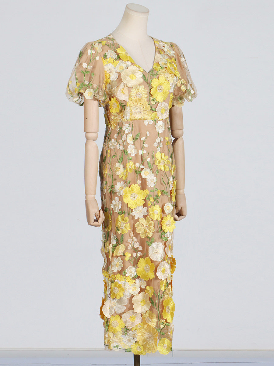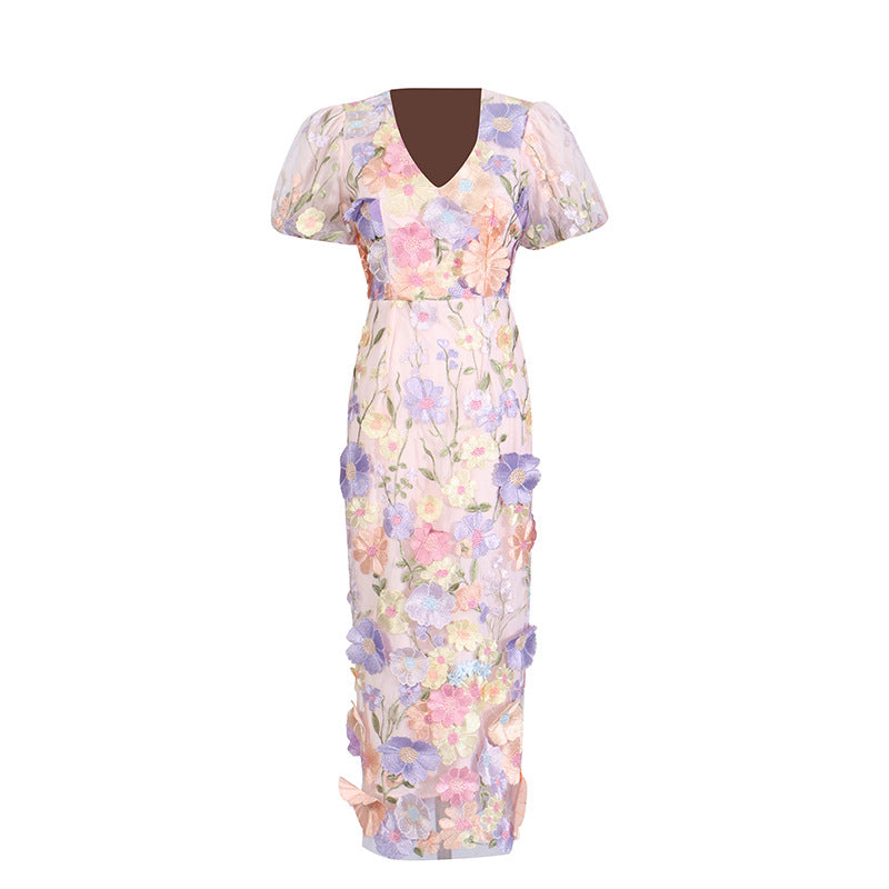 Dadizhimu Fresh Off-Coat Dress 2025 Spring New V-Neck Heavy Industry Splicing Flowers Slimming Dress Woman