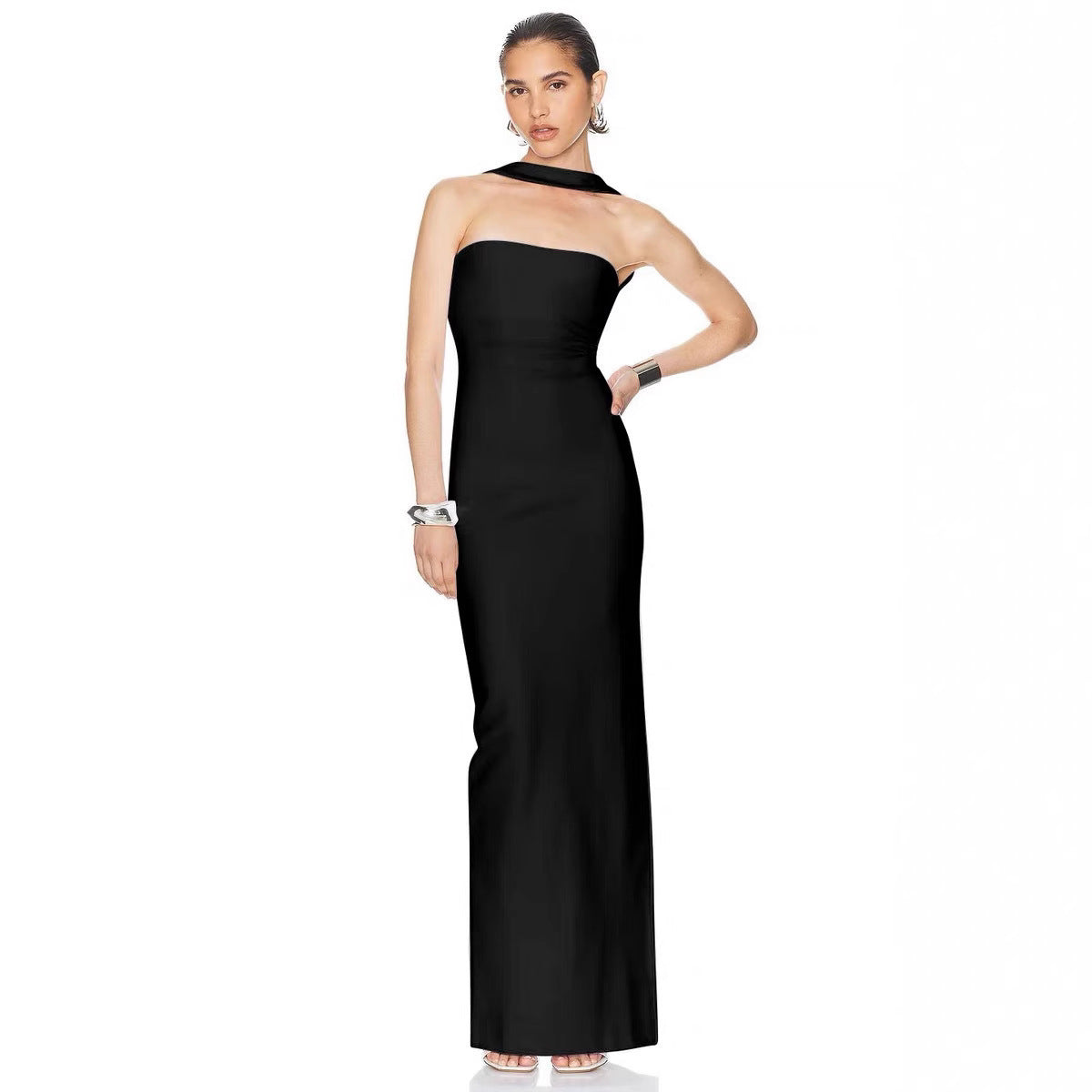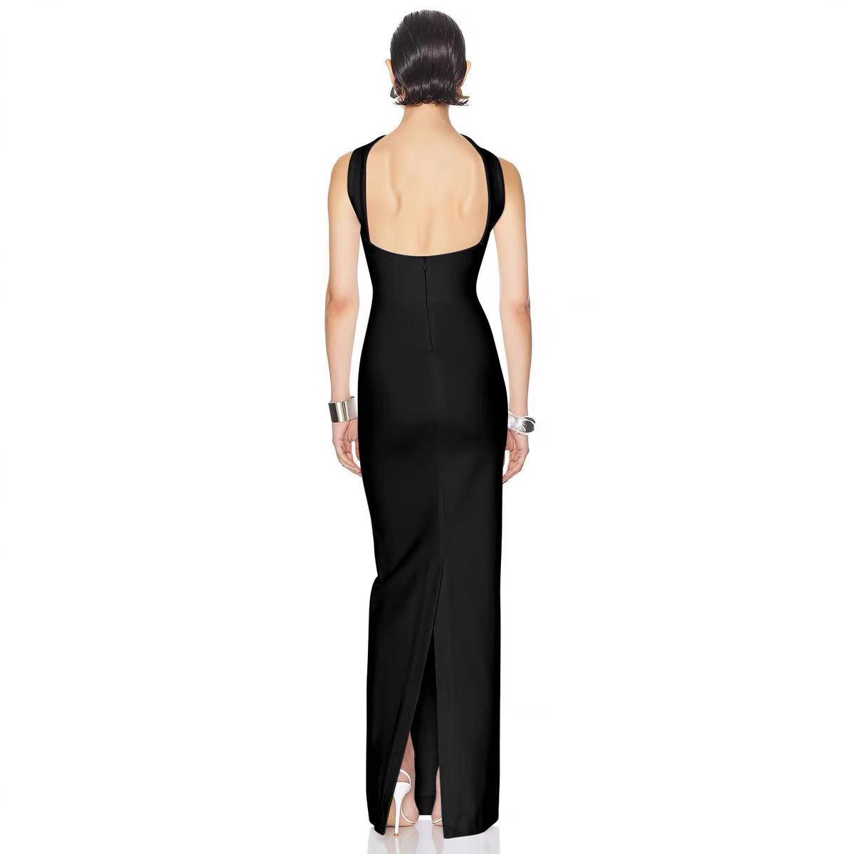 Dadizhimu Girls Hanging Neck Sleeveless Dress Sexy Bare Back Tight Body Open Fork Banded Skirt