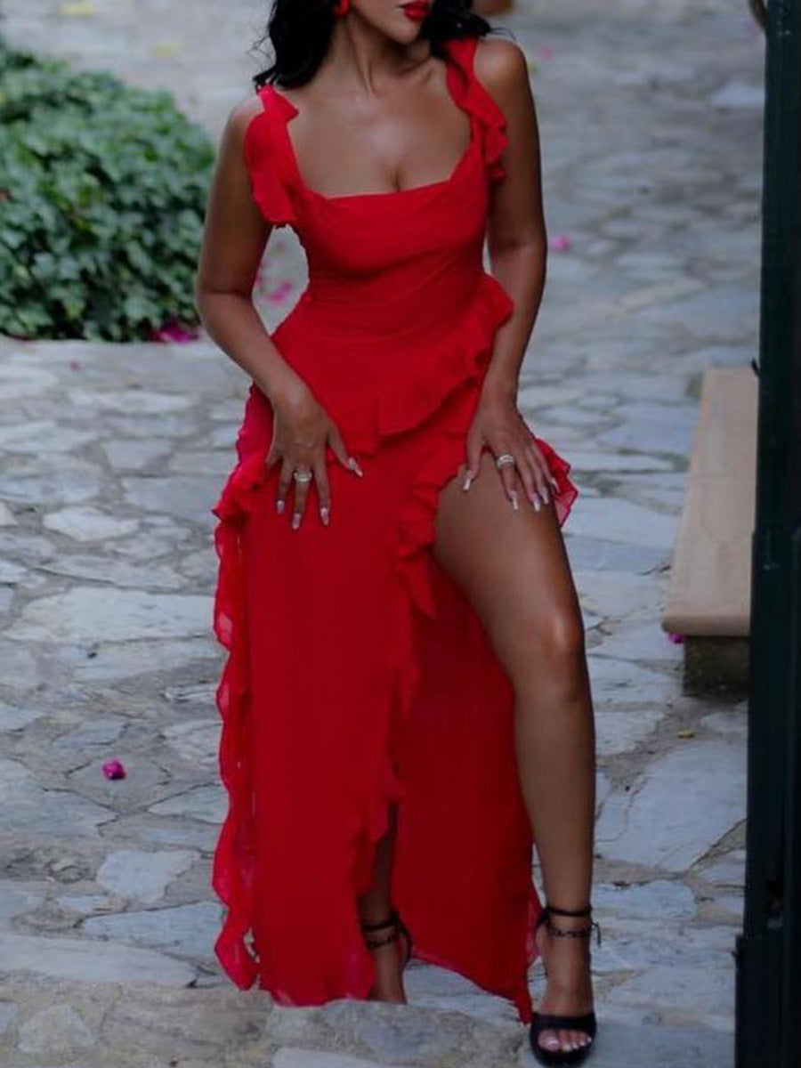 Dadizhimu Girls Wear Women's Dress Fashion Design Sensing Dress Sexy Opening-Fork Dressȹ
