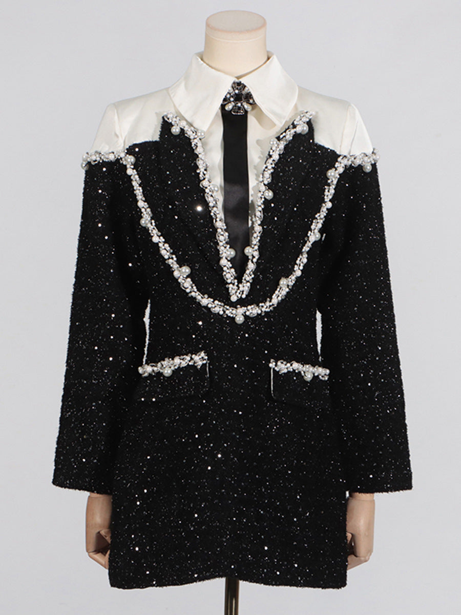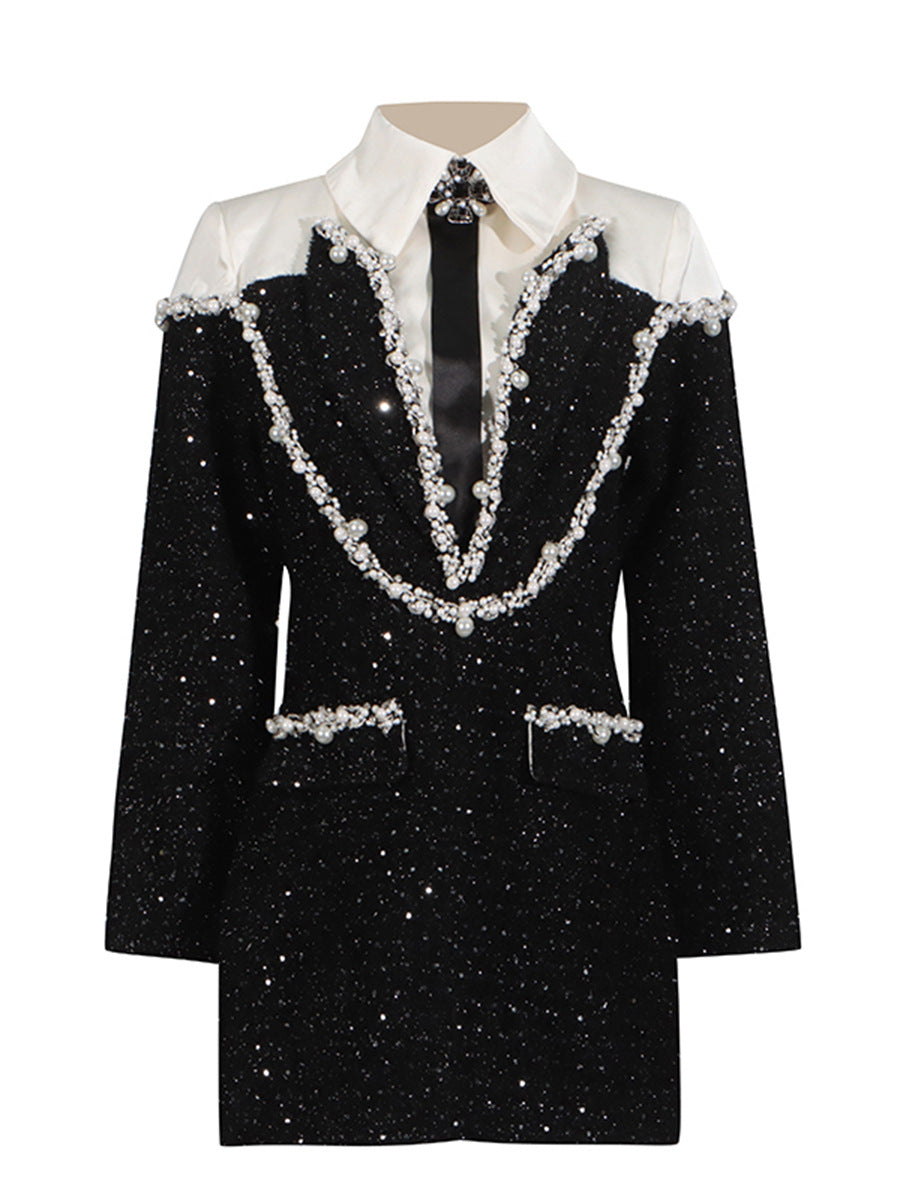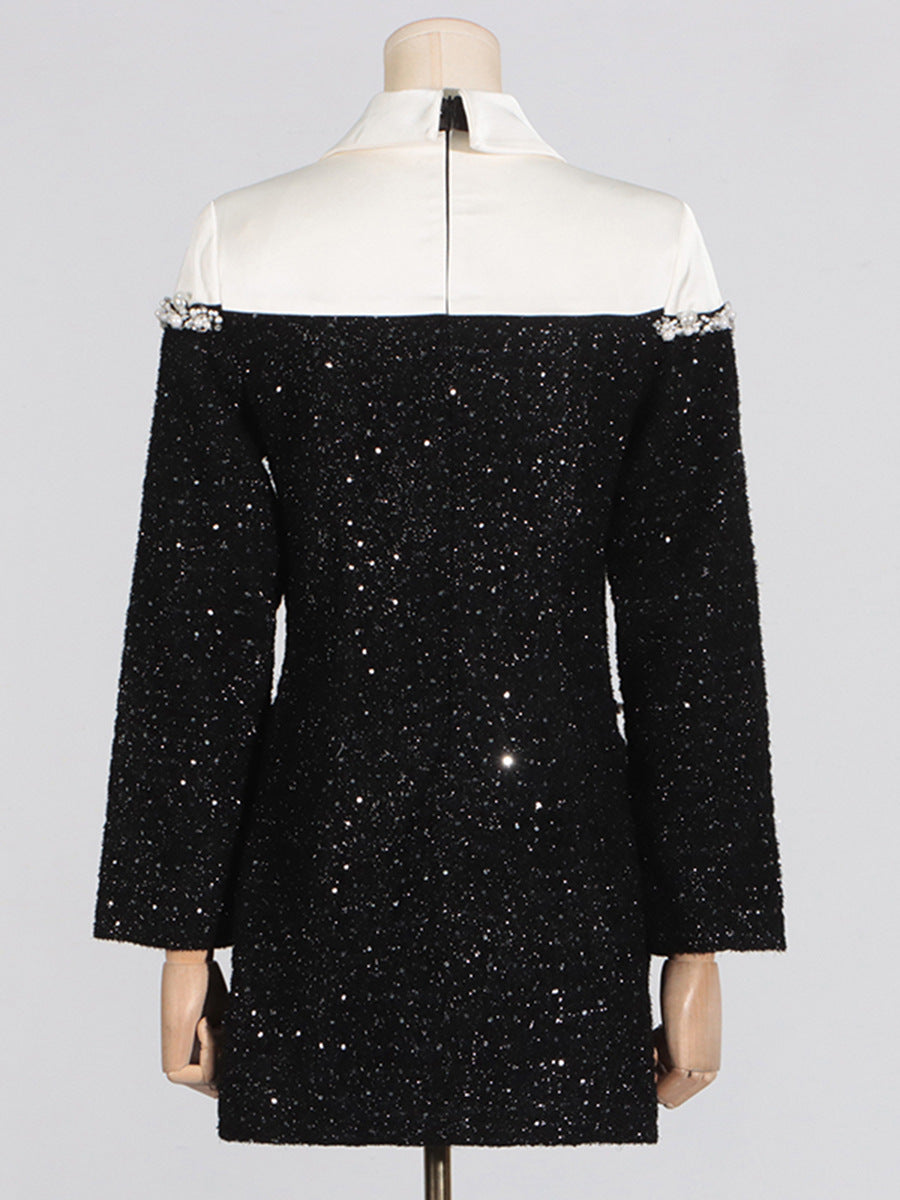 Dadizhimu New Small Fragrant Style High-End Sense Collar Nail Polish Lily Splicing Body A-Word Dress Women's Spring And Autumn