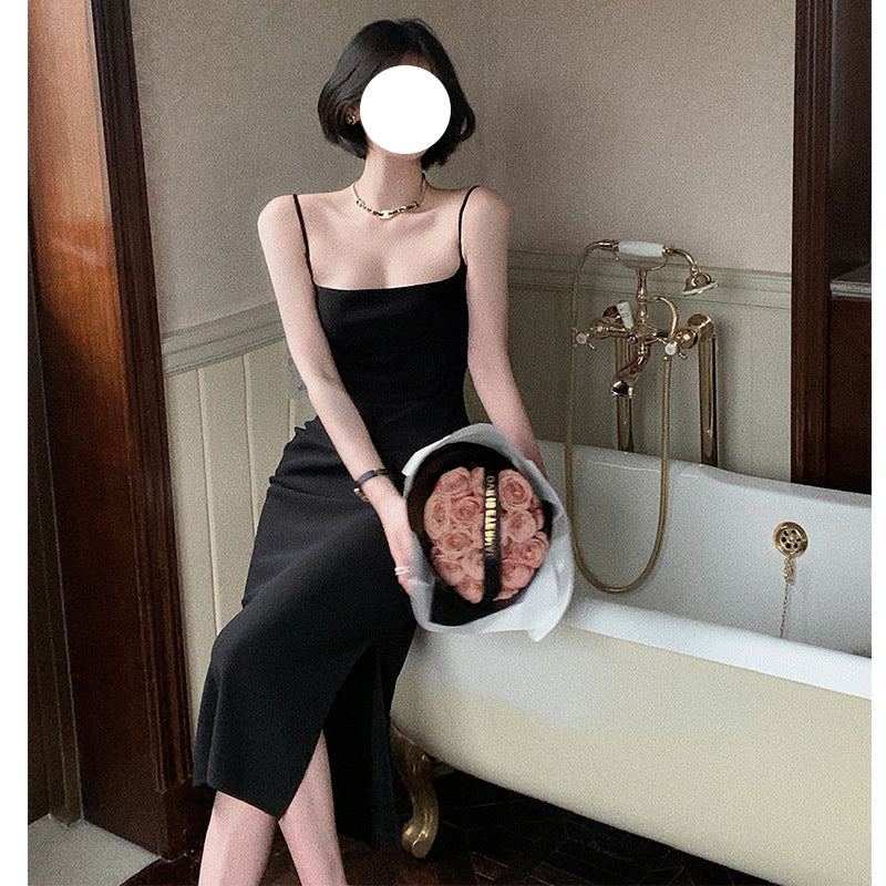 Dadizhimu New Style French Gentle Style Folding Skirt Temperament Solid Color Sling Dress Dress Dress Dress No