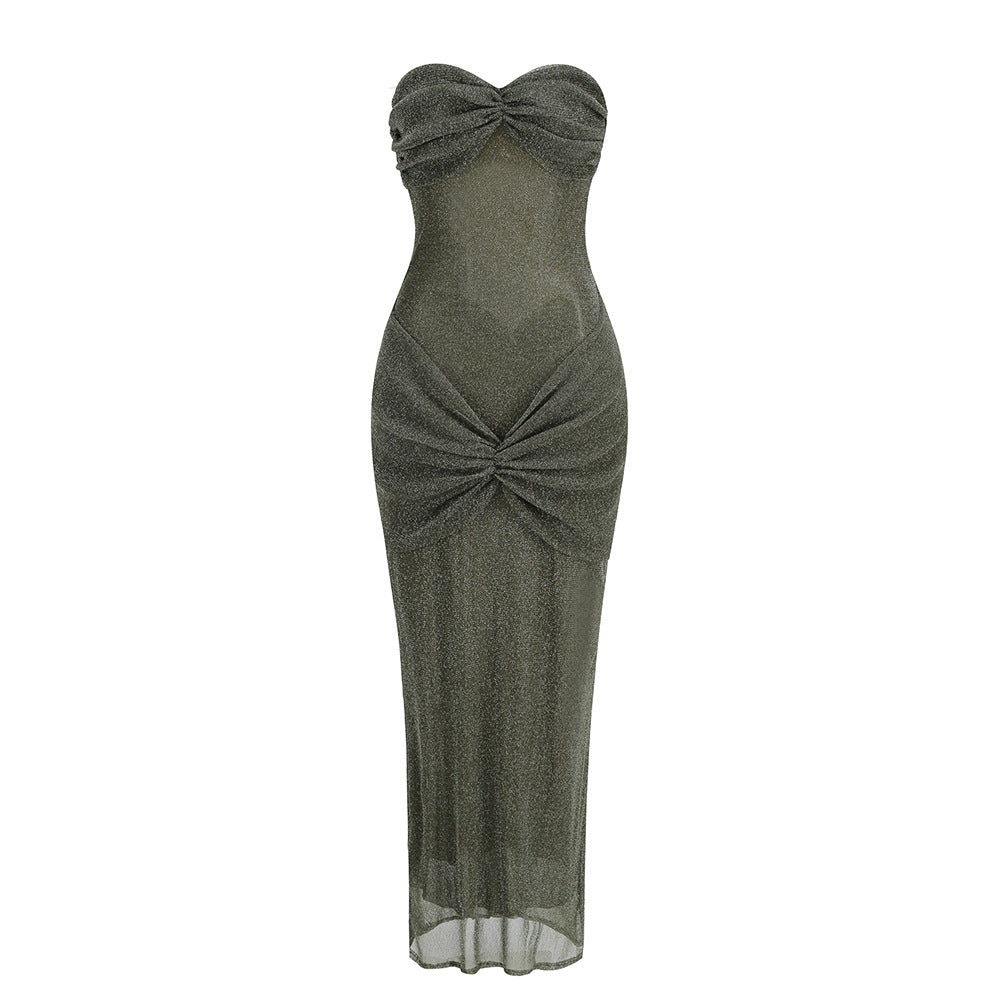 Dadizhimu Pure Lust Sexy Bosom Long Dress Body Slightly Through The Folding Niche Dress Dress Dress Long