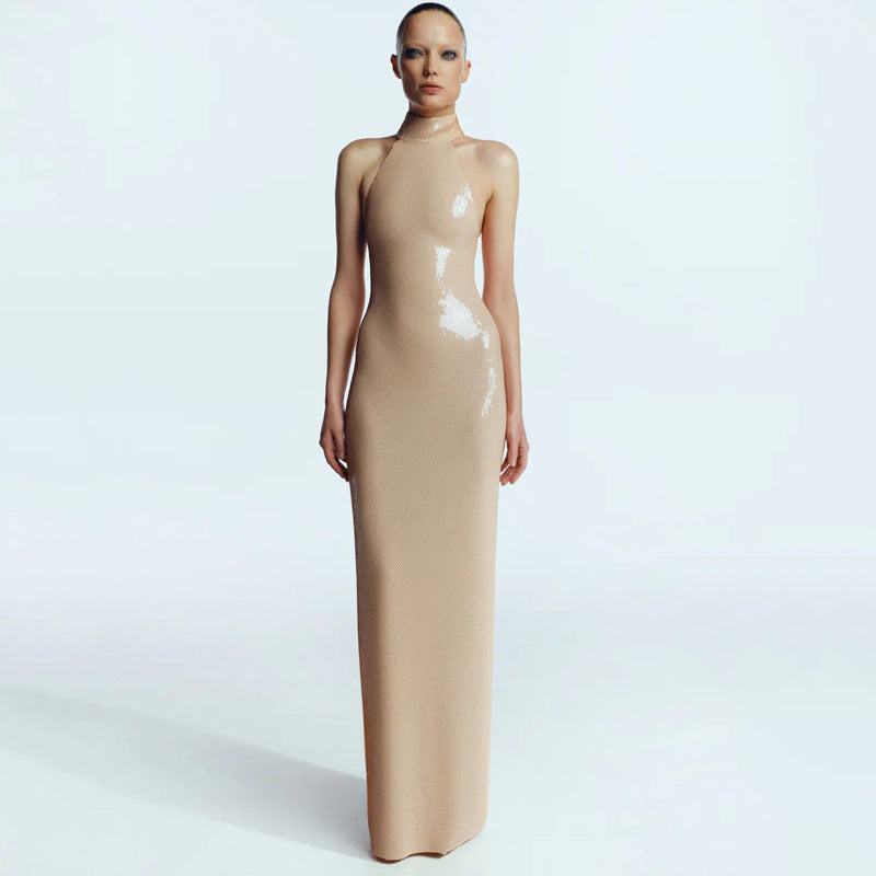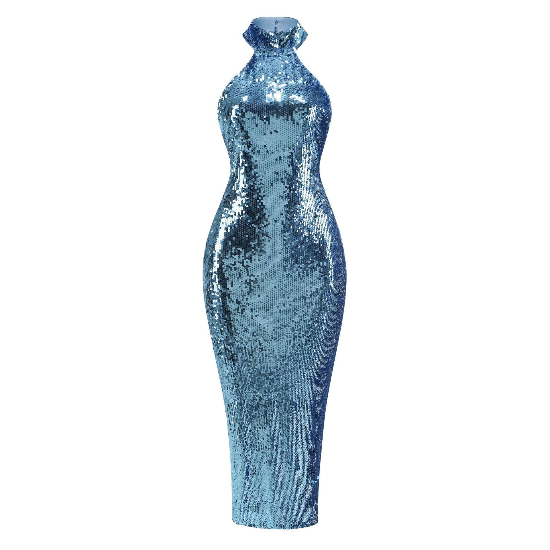 Dadizhimu Sexy Babes Beads Bag Ass Women's Hanging Neck Dress Open-Fork Lily Dress Dress