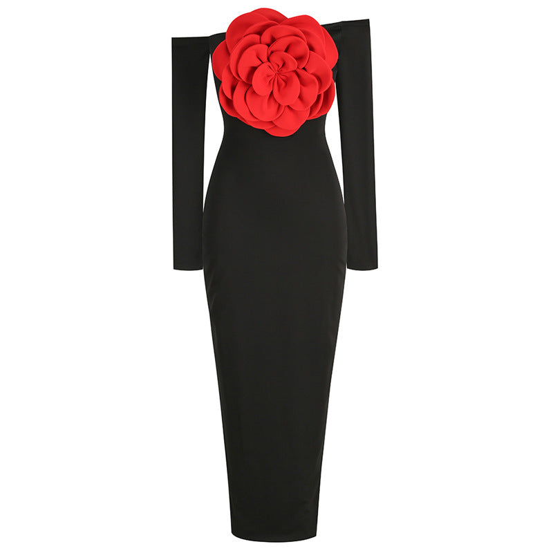 Dadizhimu Sexy Bosom Long Dress Body-Dexing Fashion Decoration Flower Opening Dress Dress Woman