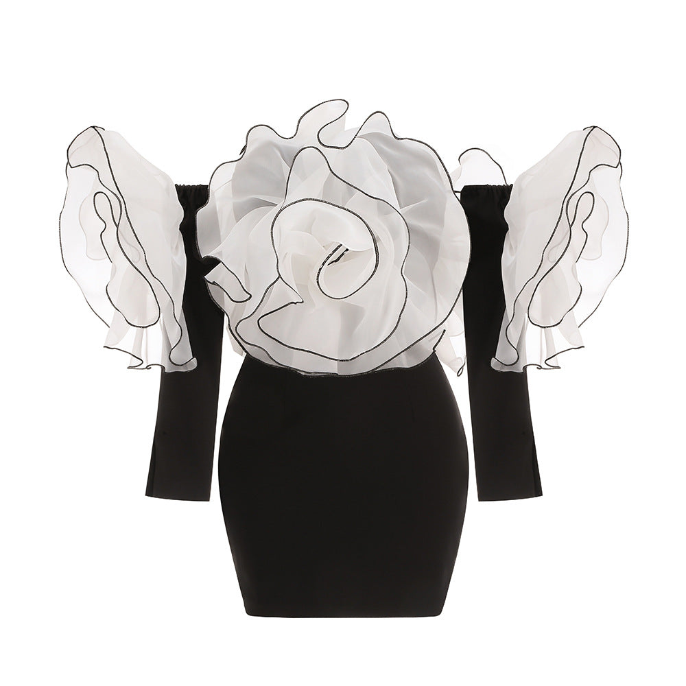 Dadizhimu Sexy Braided Shoulder Dress High-End Shoulder Decoration Lotus Leaf Side Flower Dress