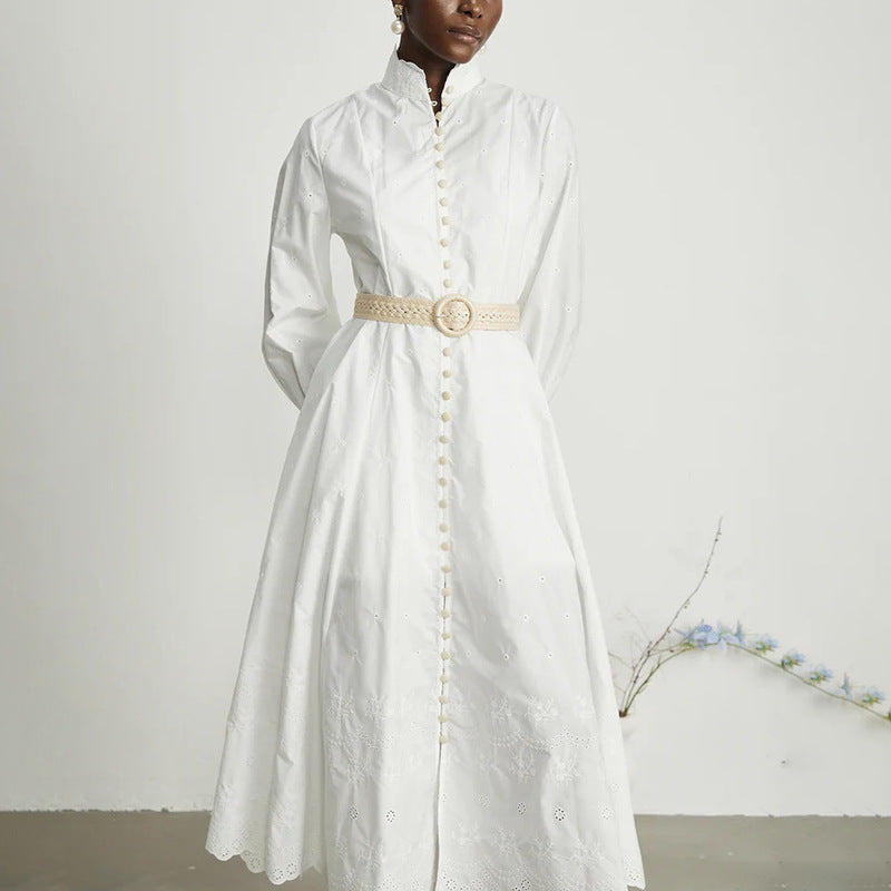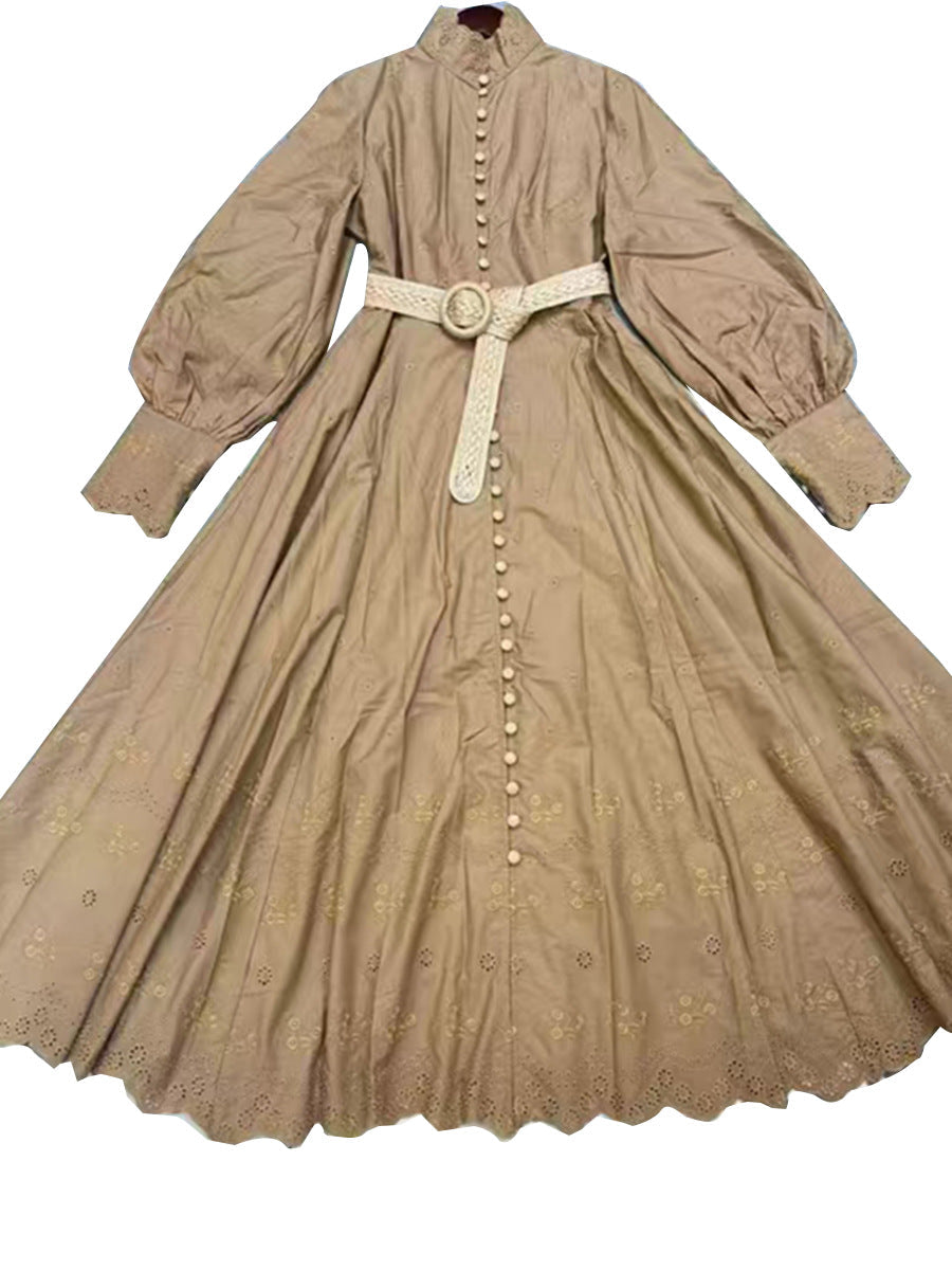 Dadizhimu Show High-End Long Dress 2025 Show Heavy Industry Embroidery Design Lantern Sleeves To The Skinny Dress Woman