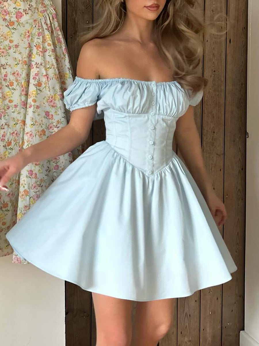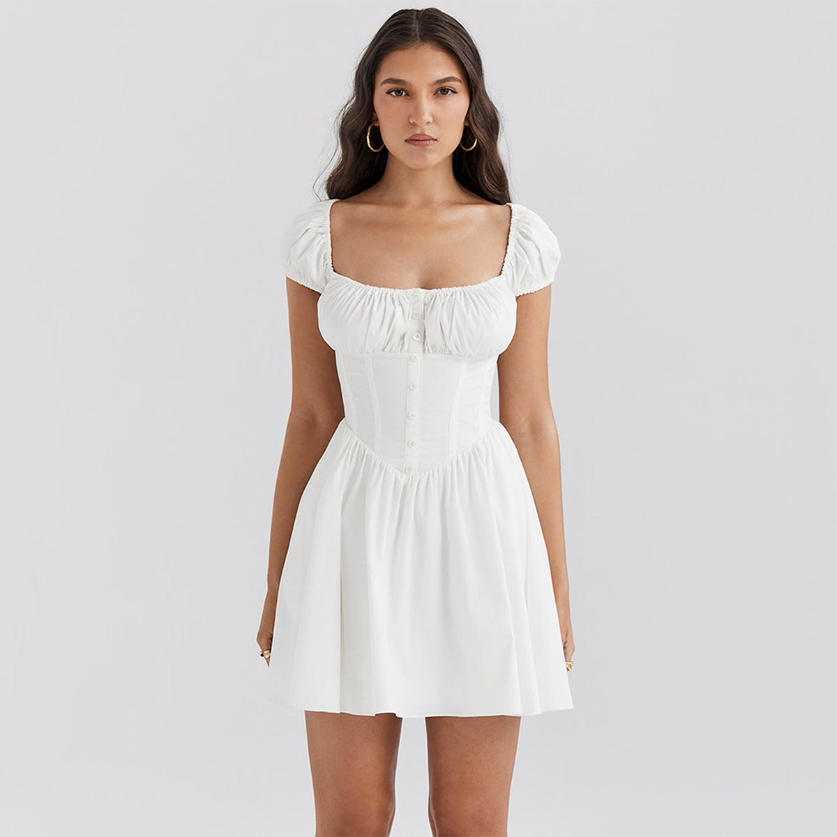 Dadizhimu Sweet And Spicy Women's Dress Dress Fish Bone Repair Hottie Small Dress Soaked Sleeve Square Dress Dress Women's Dress