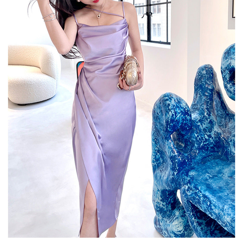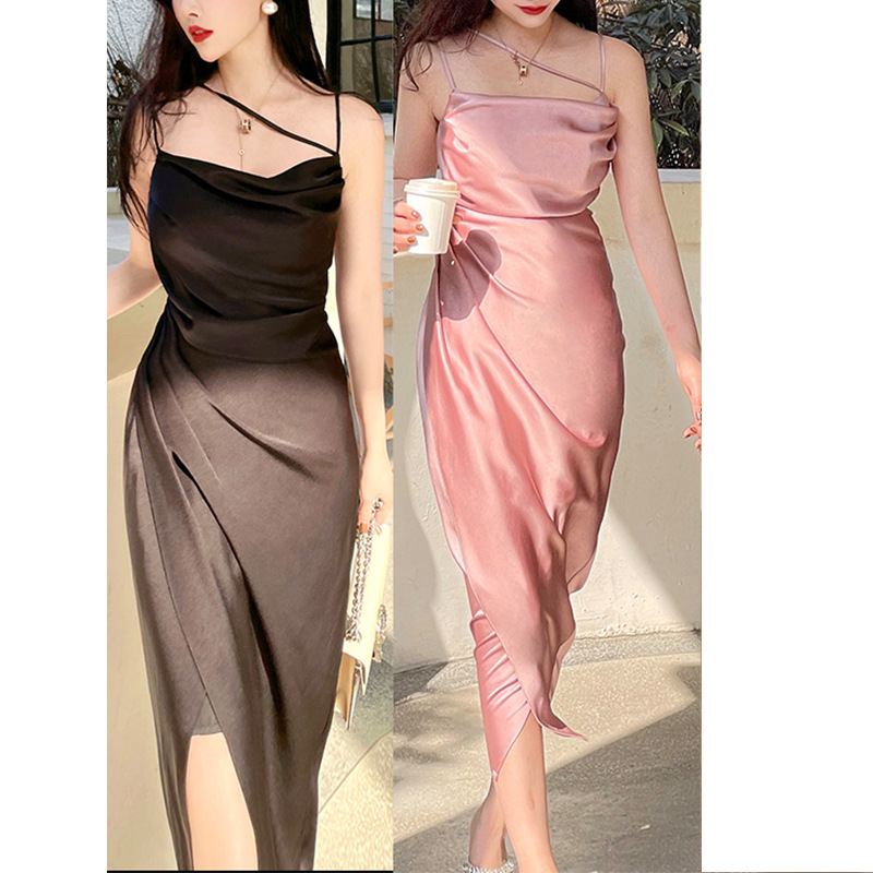 Dadizhimu Temperament Pure Sexy Sling Dress Body Slim Thin Open Fork Dress New
