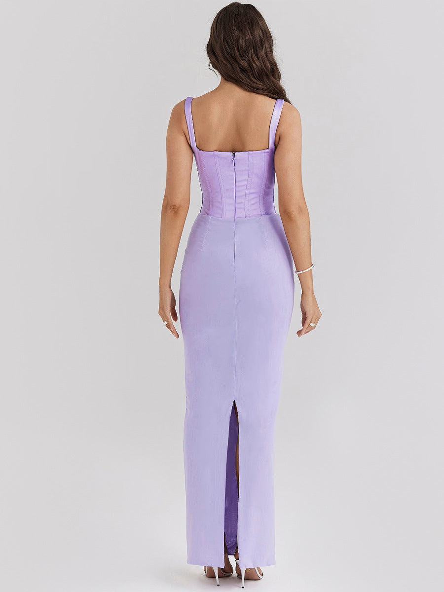 Dadizhimu V-Neck Fish Bone Sling Temperament Dress Dress Body-Exlented Fork Mid-Long Dress Dress Dress Dress Dress