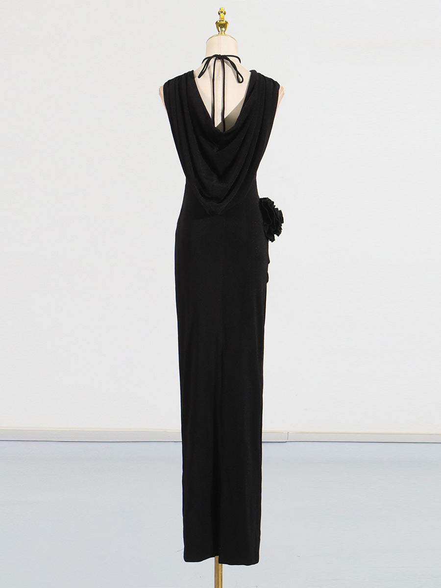 Dadizhimu Wind Hanging Neck Dress Dress 2025 New Niche Metal Buckle Decoration Slimming Long Dress Woman