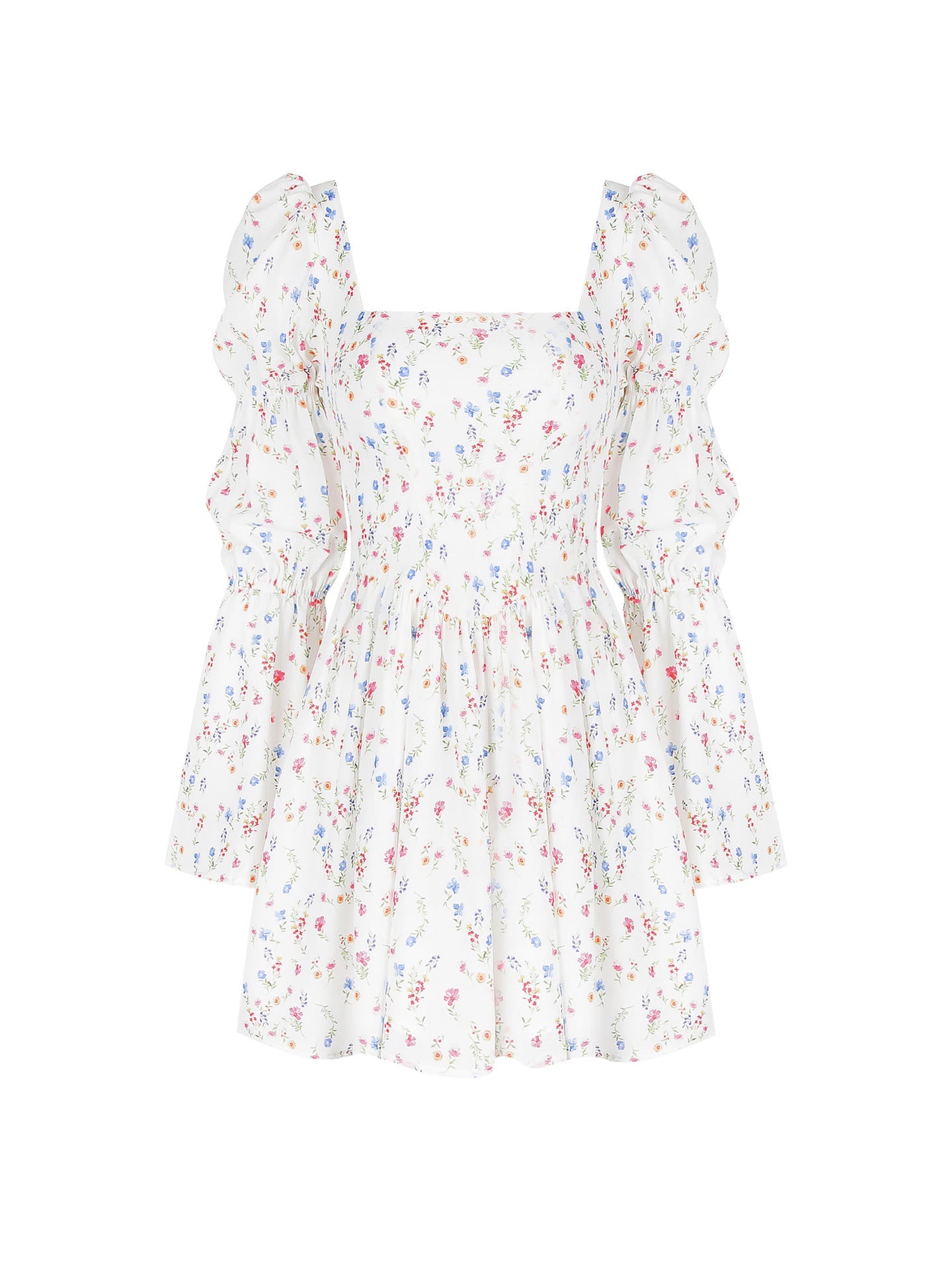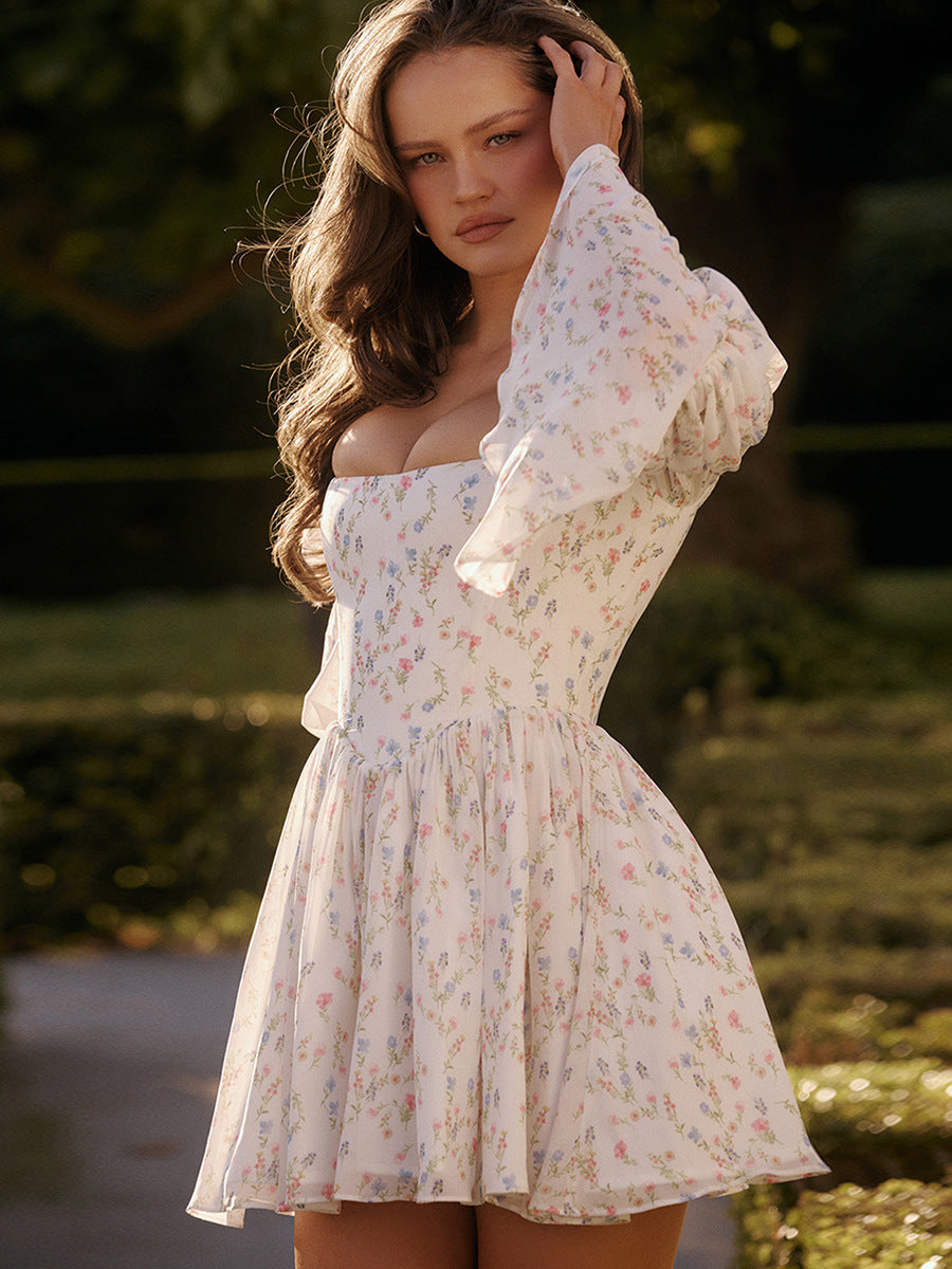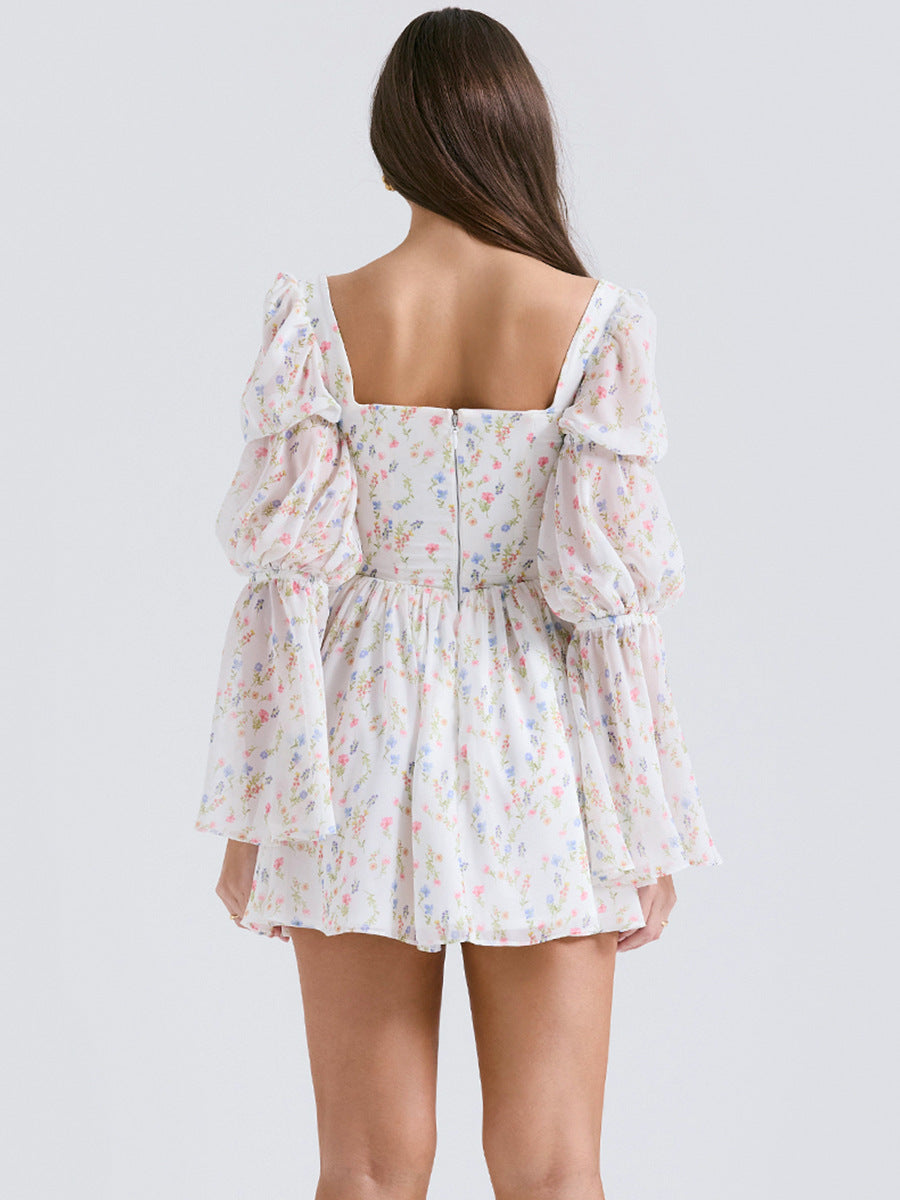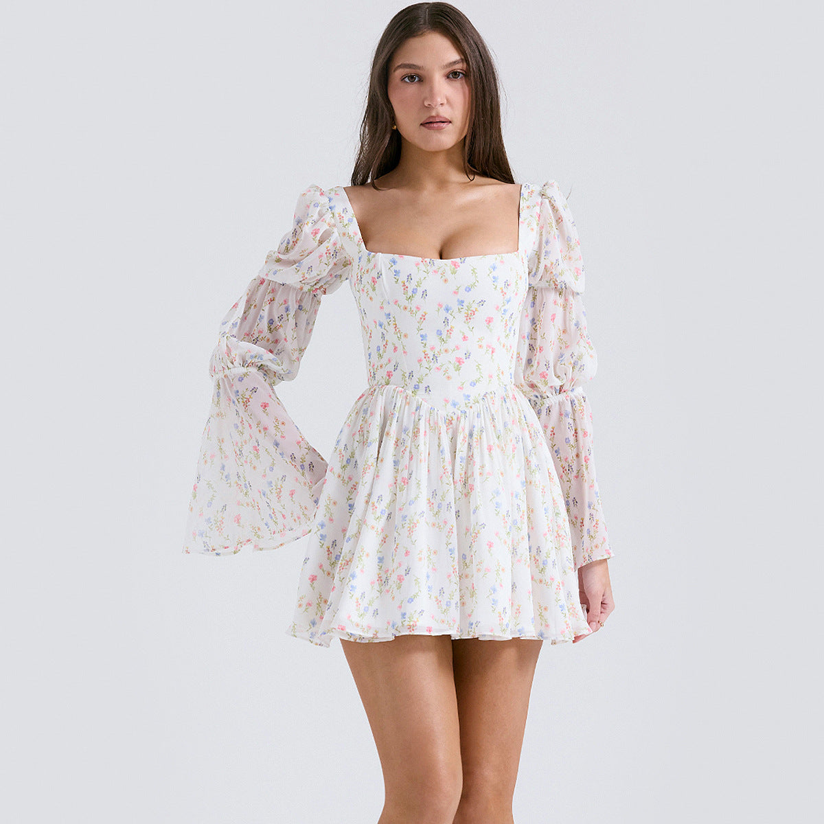 Dadizhimu Women's Clothing Pure Sexual Sexy Waist Show Thin Sleeve Print Dress Spring Women Chiffon Dress New