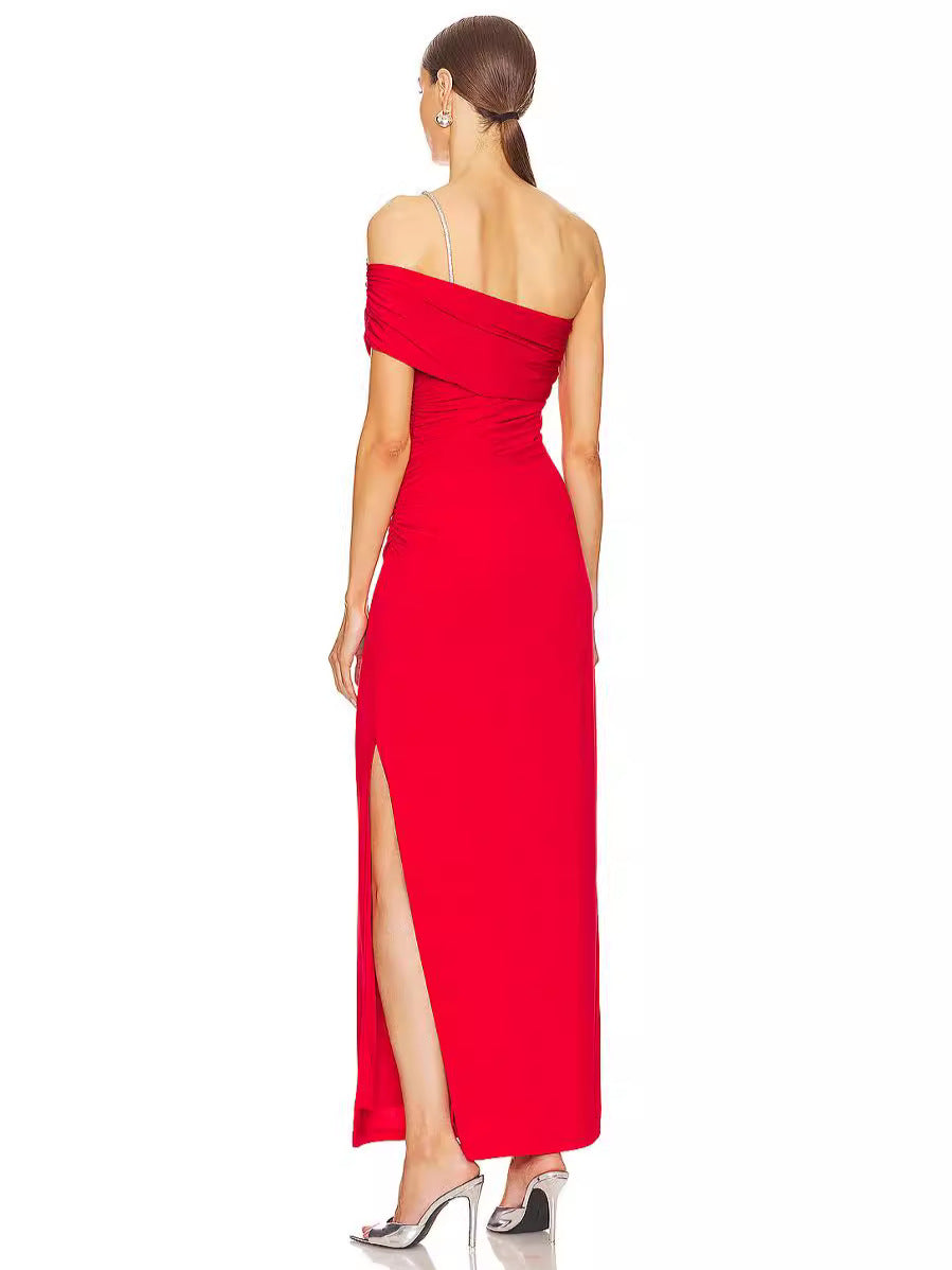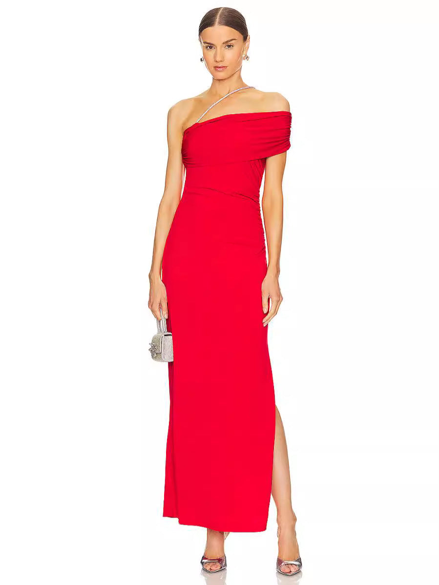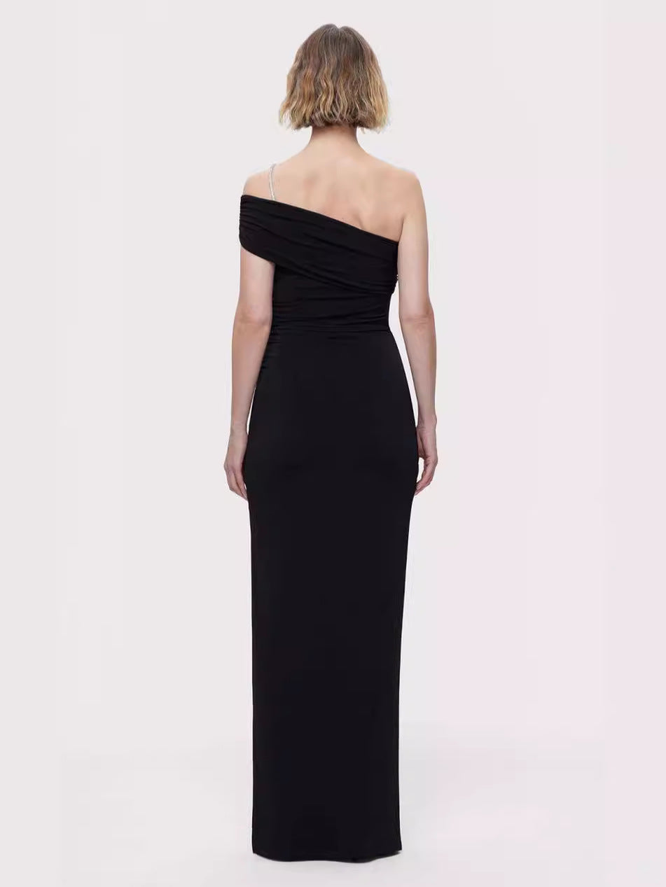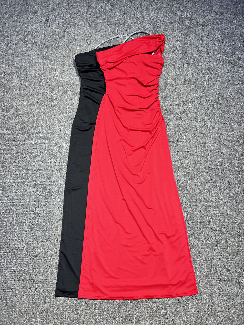Dadizhimu Women's Minimalist Temperament High-End Slanted Shoulder Repair Bag Hip Up Dress French Dress Summer