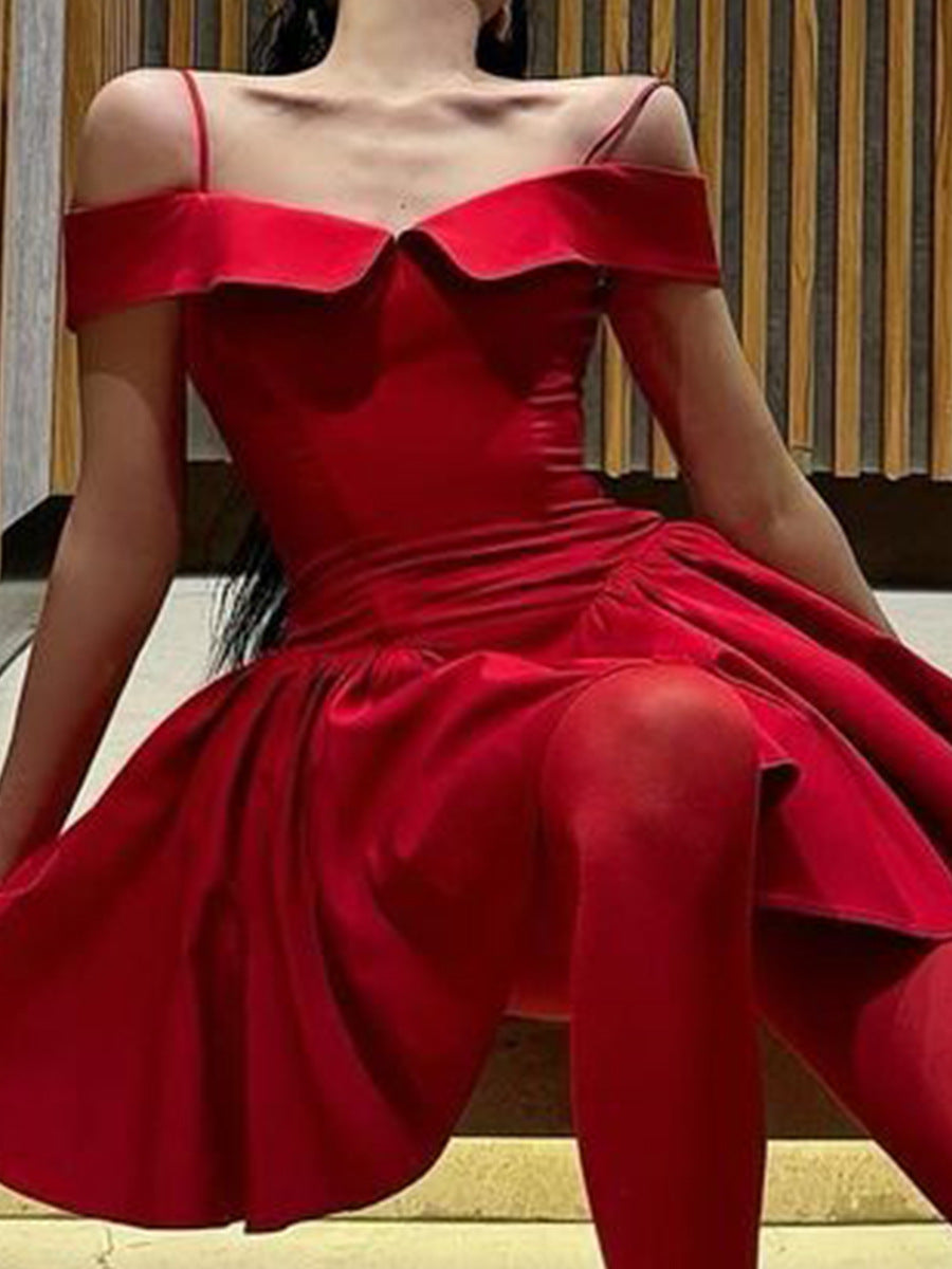 Dadizhimu Women's New One-Word Shoulder Babes Sling Small Black Dress Body-Exlen Sexy Dress French Dress