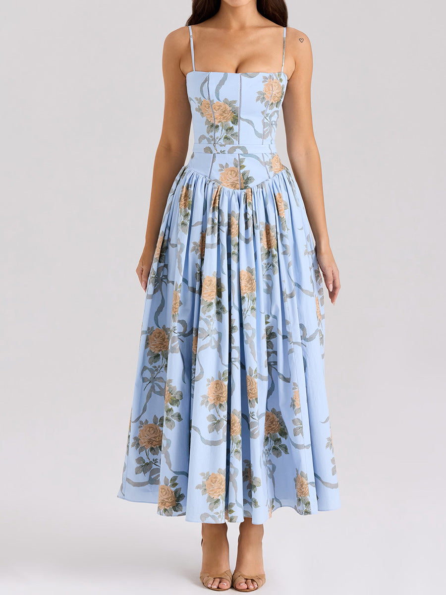 Dadizhimu Women's Sexy Body White Broken Flowers Pure Lusty Breeze In The Long Dress Babes Hanging Dress Summer Female High Sense