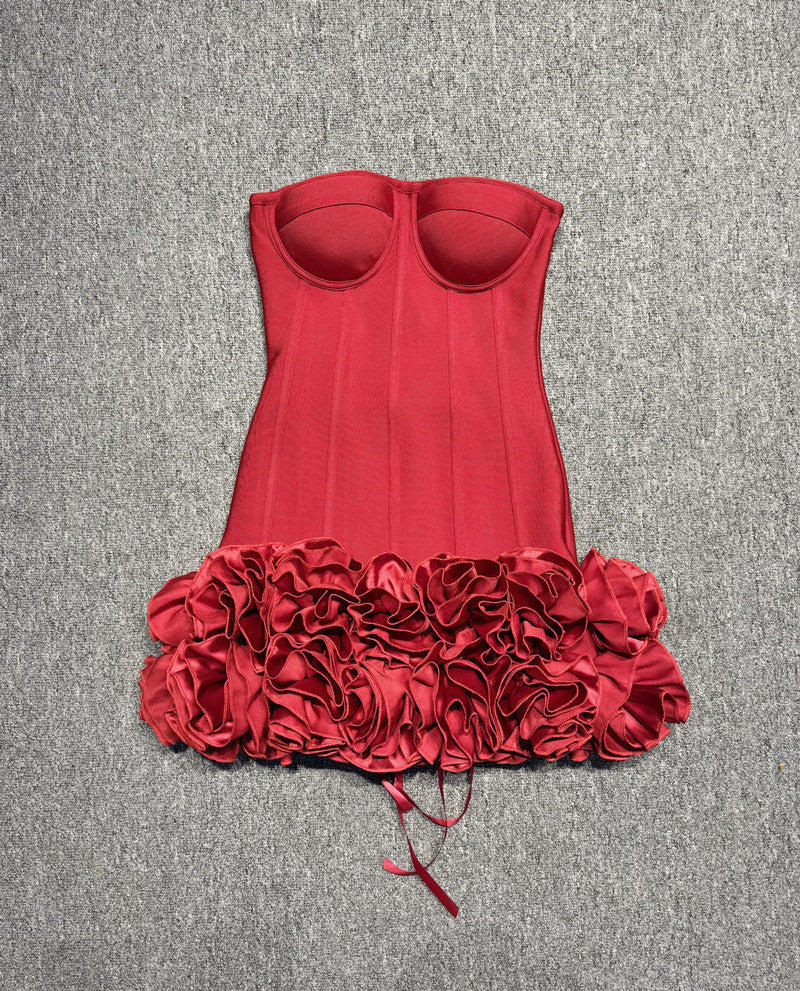 Dadizhimu Collared Thoracic Fish Bone Repair Slime Three-Dimensional Flower With A Hip Bandage Dress