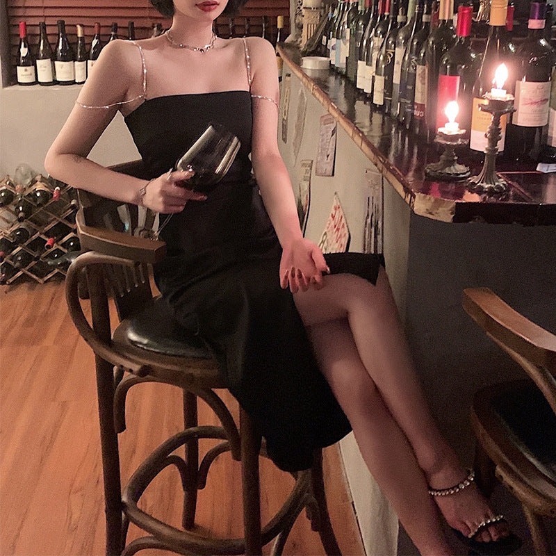 Dadizhimu Densant Sling Dress Female Summer Niche Design French Waist Repair Black Dress Dress Dress Dress