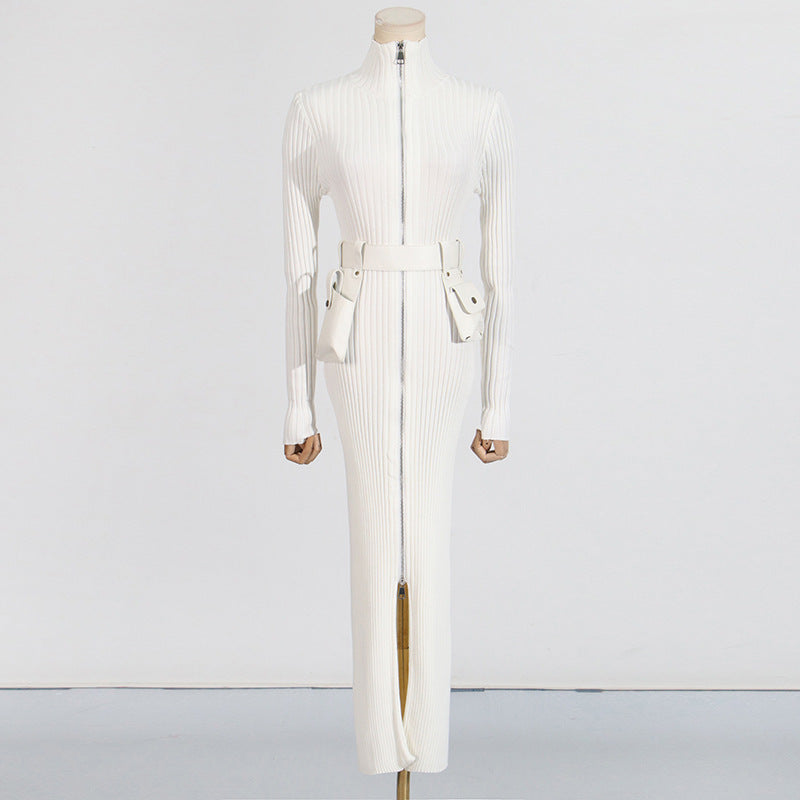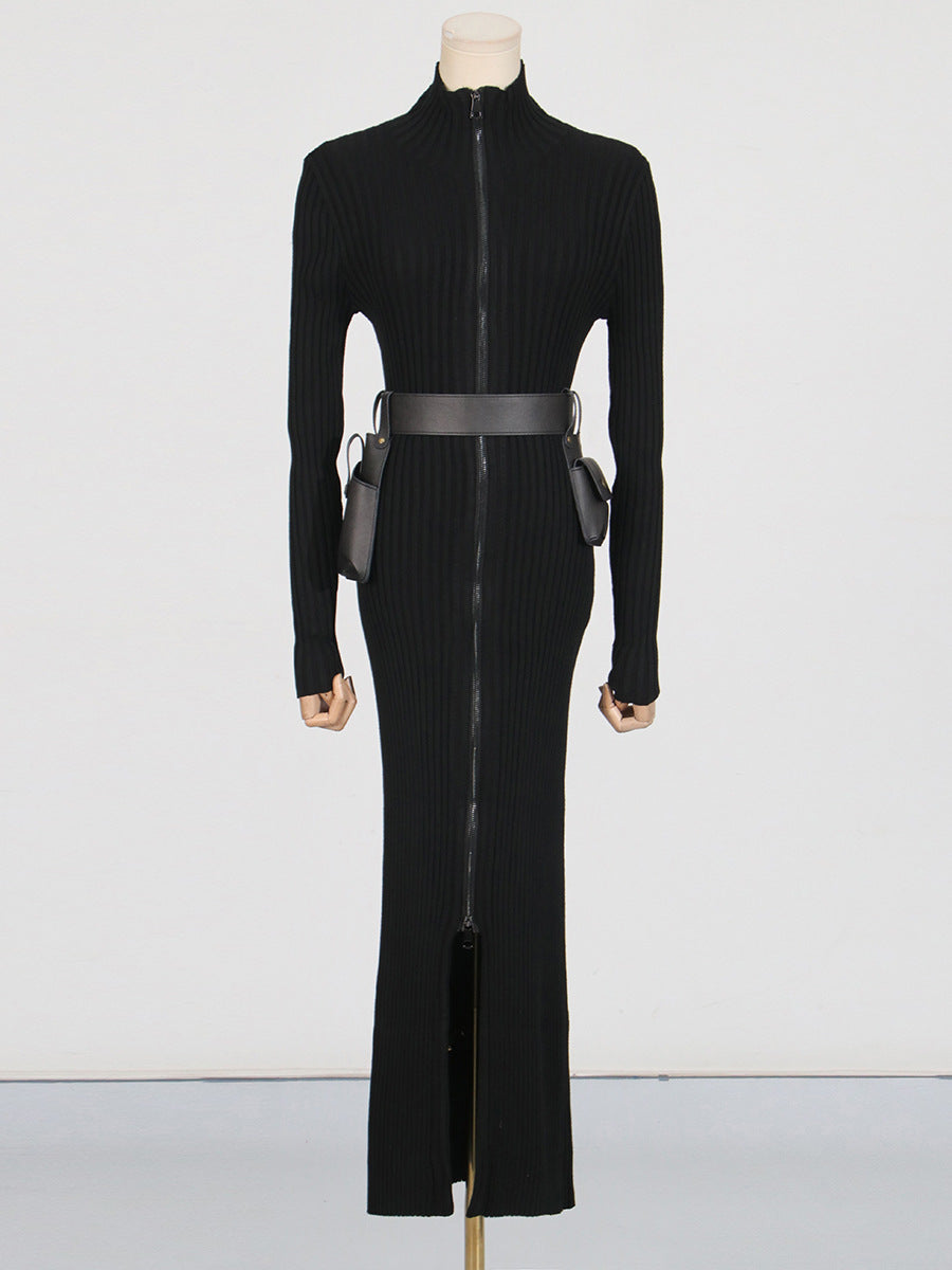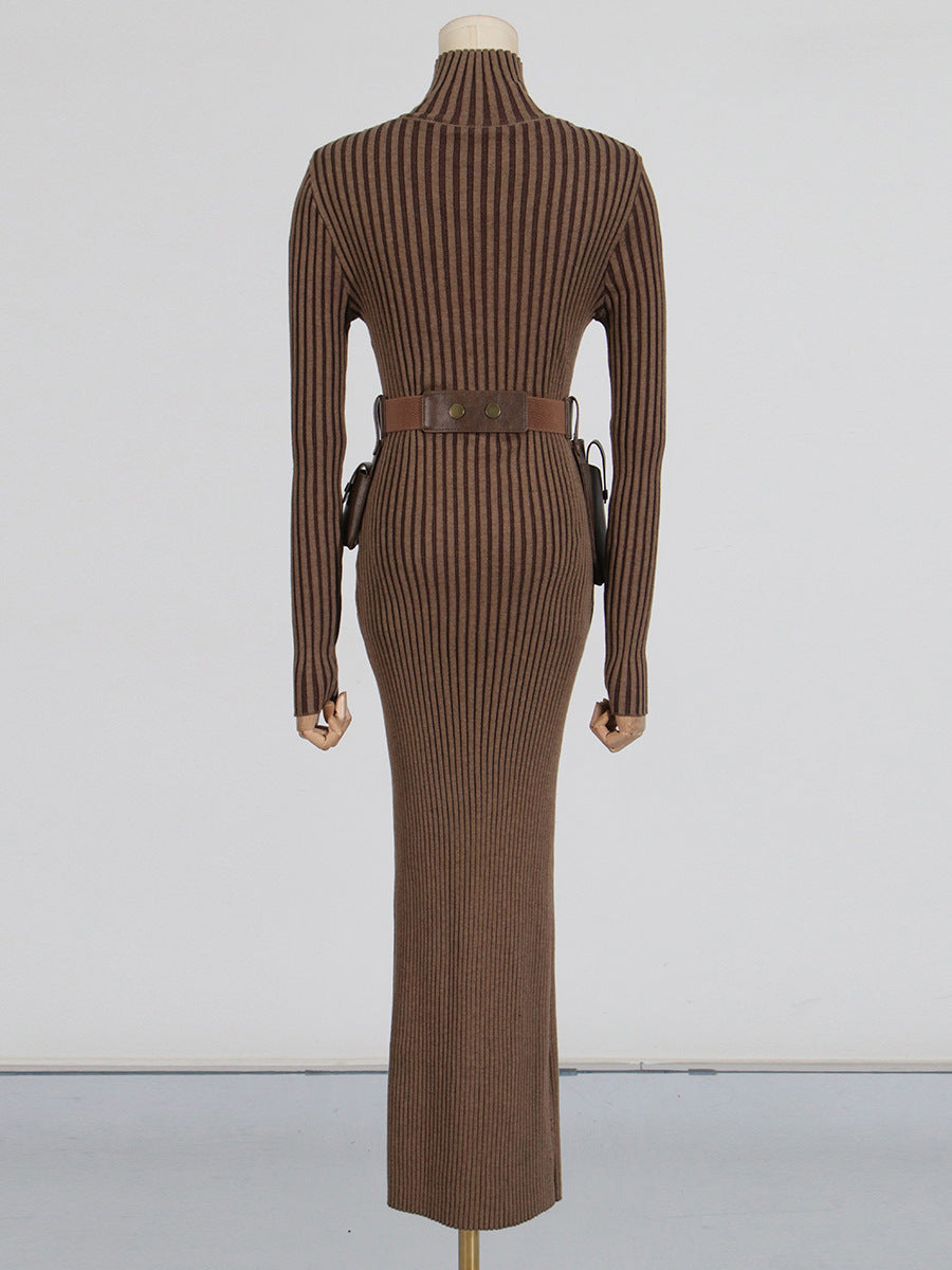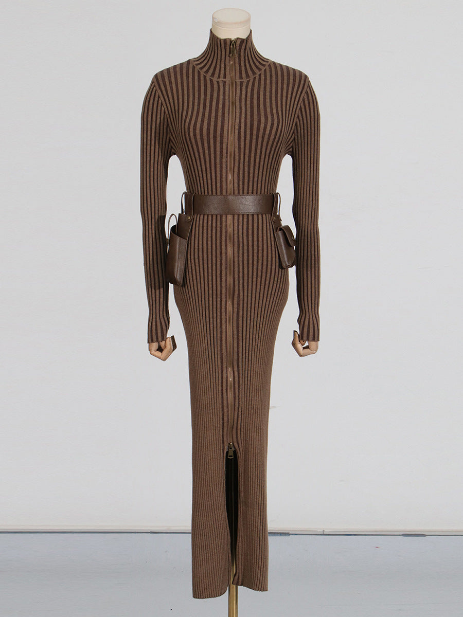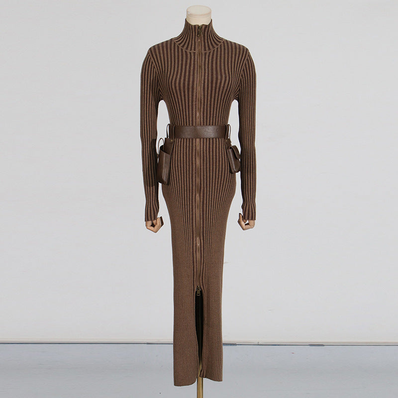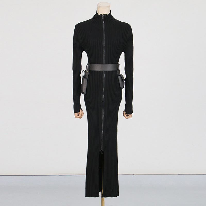 Dadizhimu Dress 2025 Summer New Pocket Belt Design Waist Thin Knitwear Dress Woman