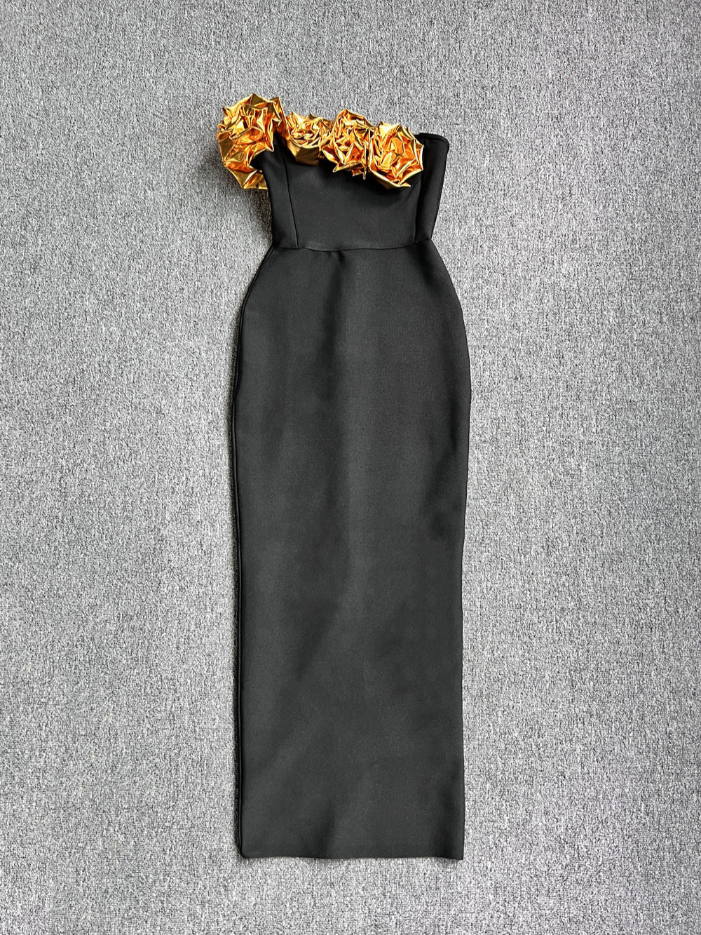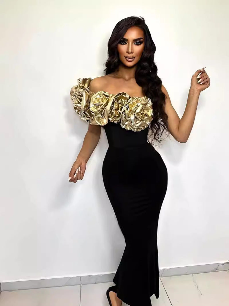 Dadizhimu Dress Female High-Grade Three-Dimensional Flowers To Show Thin Temperament Party Ass Dress