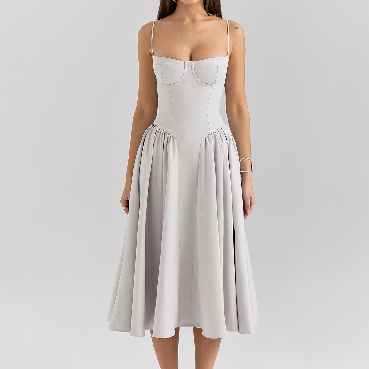Dadizhimu Dress Hottie Girl Sexy V Tie Sling Mid-Long Dress To The Waist Show Skinny Back Dress Dress Woman