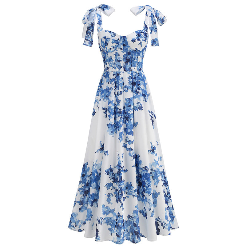 Dadizhimu Fashion Sexy Print Sling Skirt Crumm Flower Back Strap Women's High-End Swing Dress