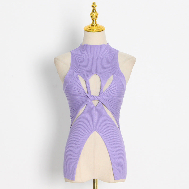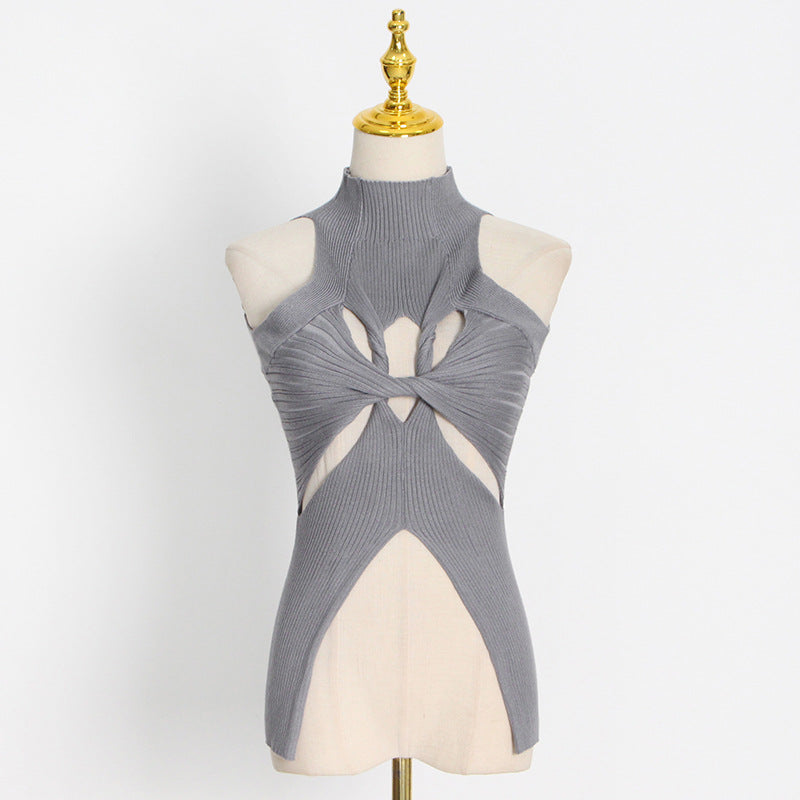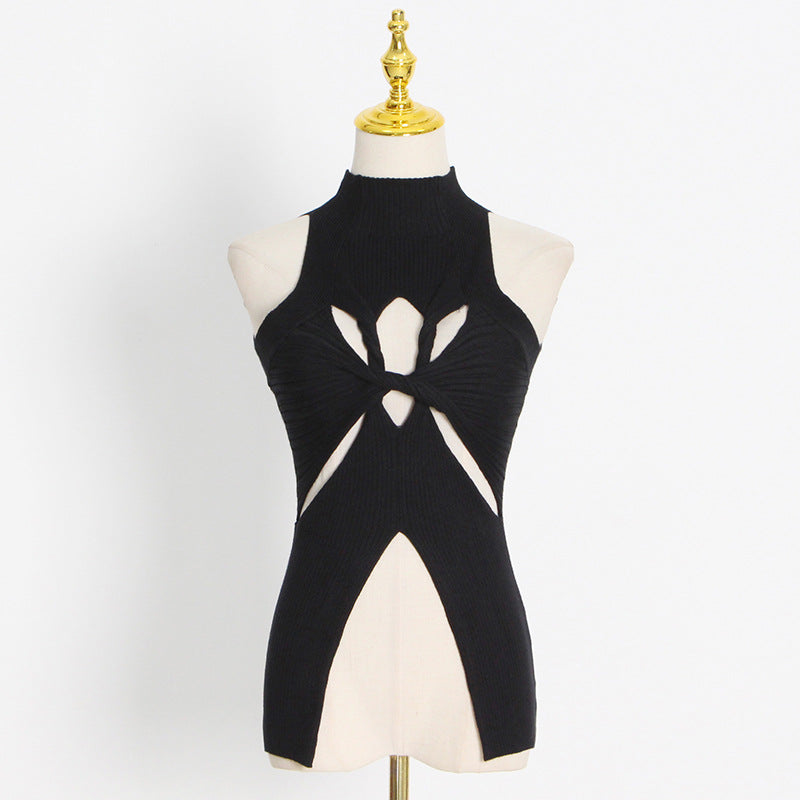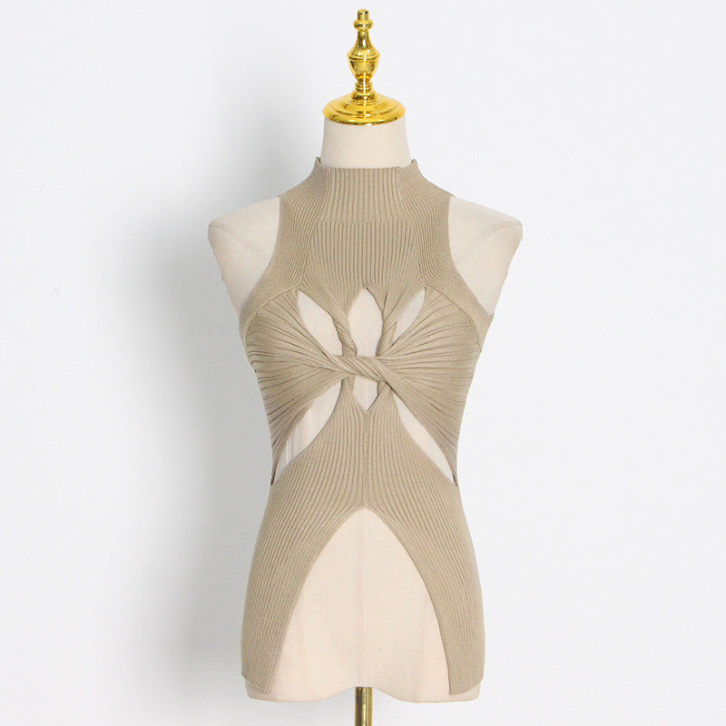 Dadizhimu Fashion Tying Tying Design 2025 New Irregular Swing Sleeveless High-Collar Knitting Vest