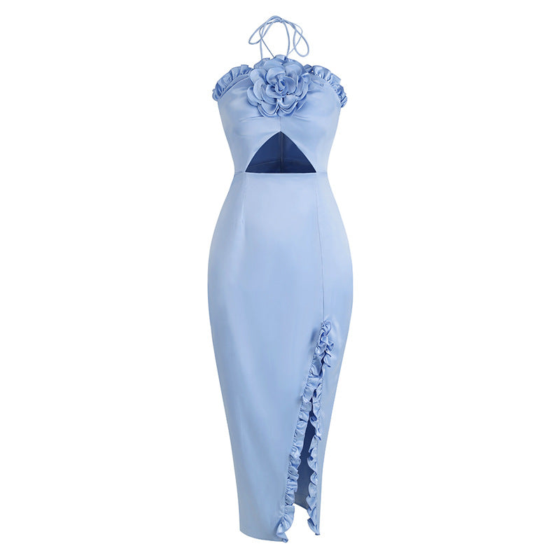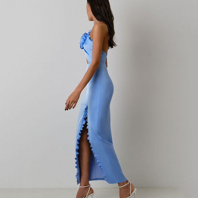 Dadizhimu High-End Sexy Hanging Neck Dress Irregular Opening Dress Long Model