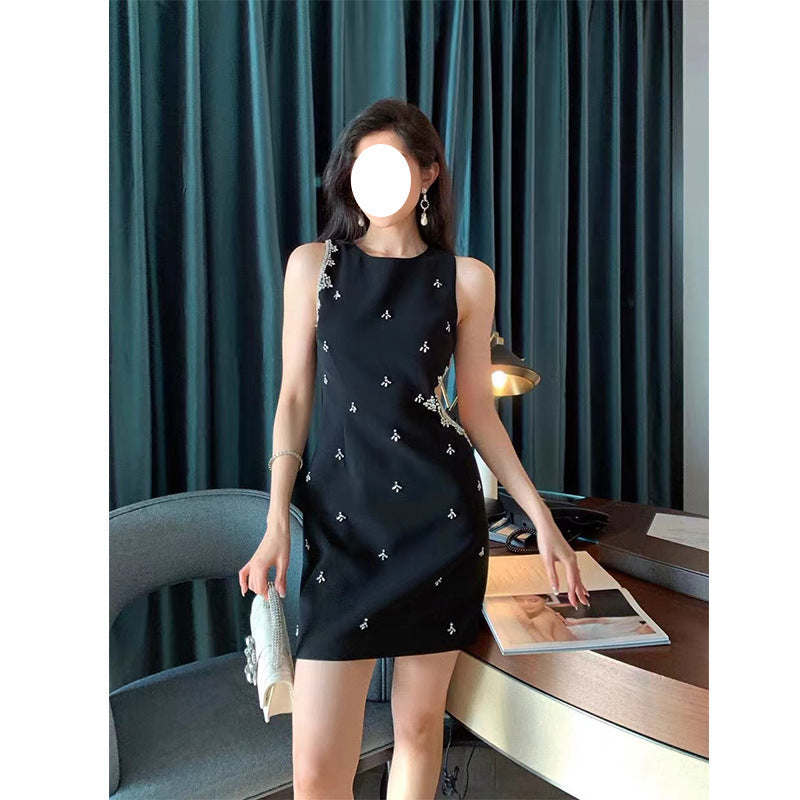 Dadizhimu Little Black Dress French Naughty Niche Maid Dinner Dress Sleeveless Vest Dress Woman