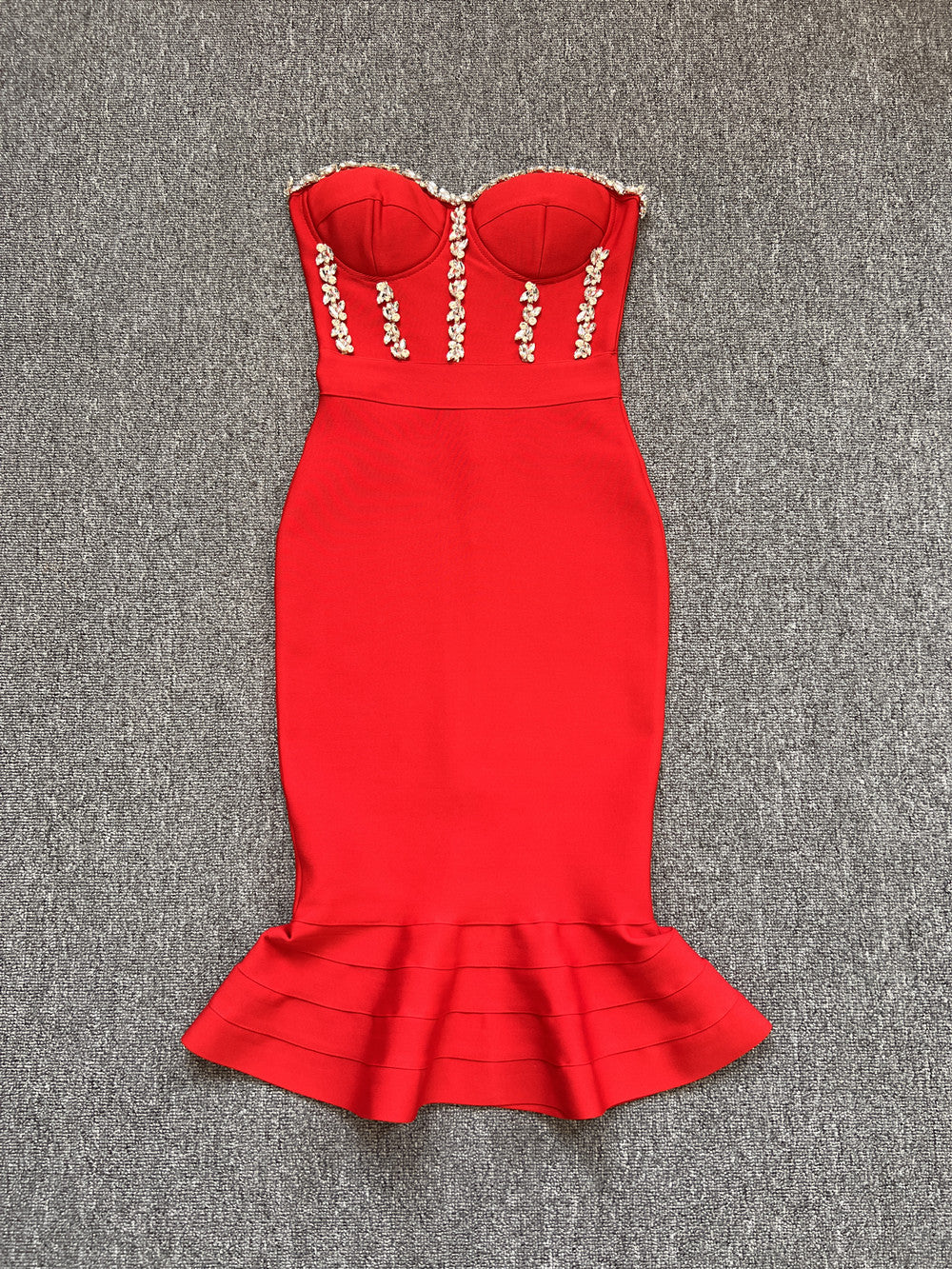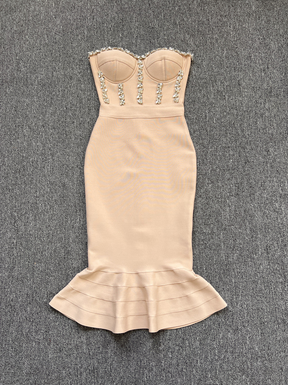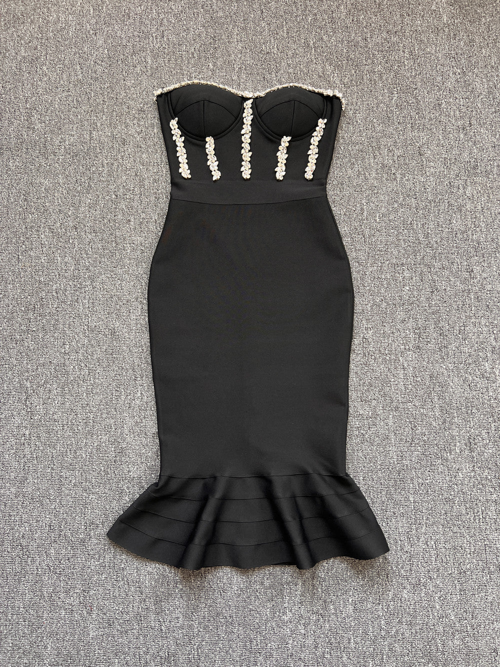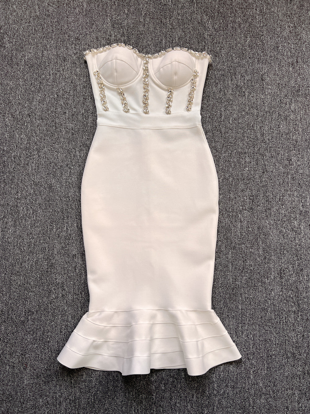 Dadizhimu Luxury Rich Family Gold Wind And Shoulder Bra With Chest Pad Water Drill Bag With Thumbs And Leaves Side Fishtail Dress Bandage Skirt