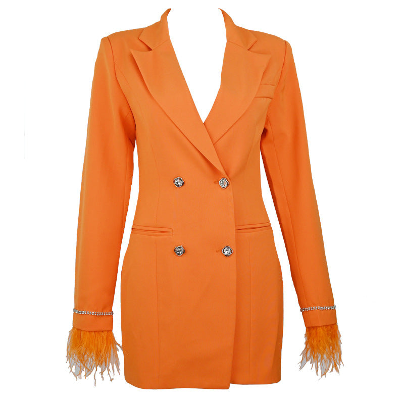 Dadizhimu New Orange Suit Collar Double Row Drill Buckle Back Hollow Cuff Feather Repair Suit Dress