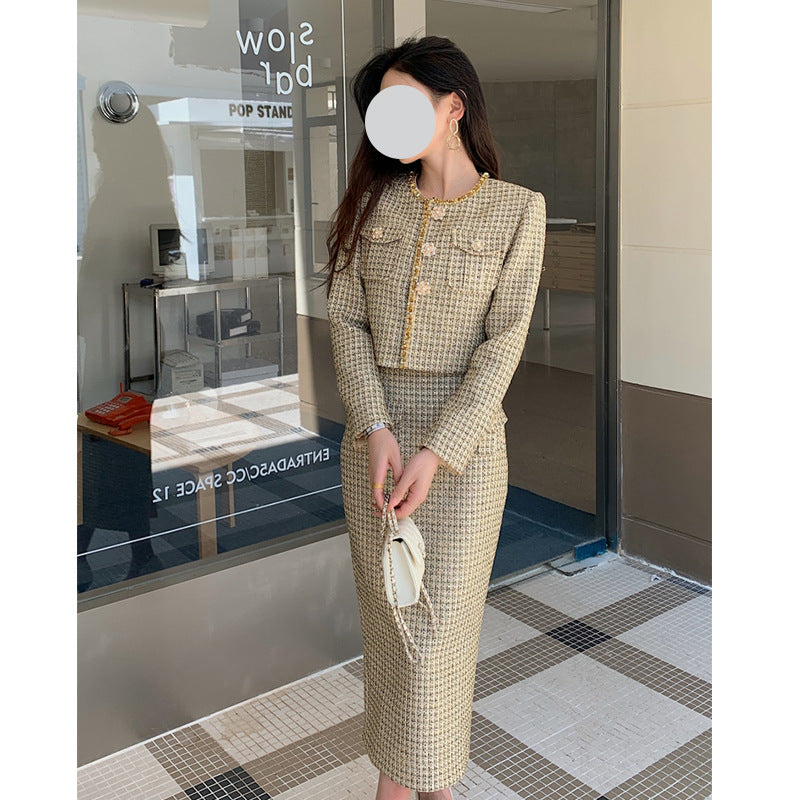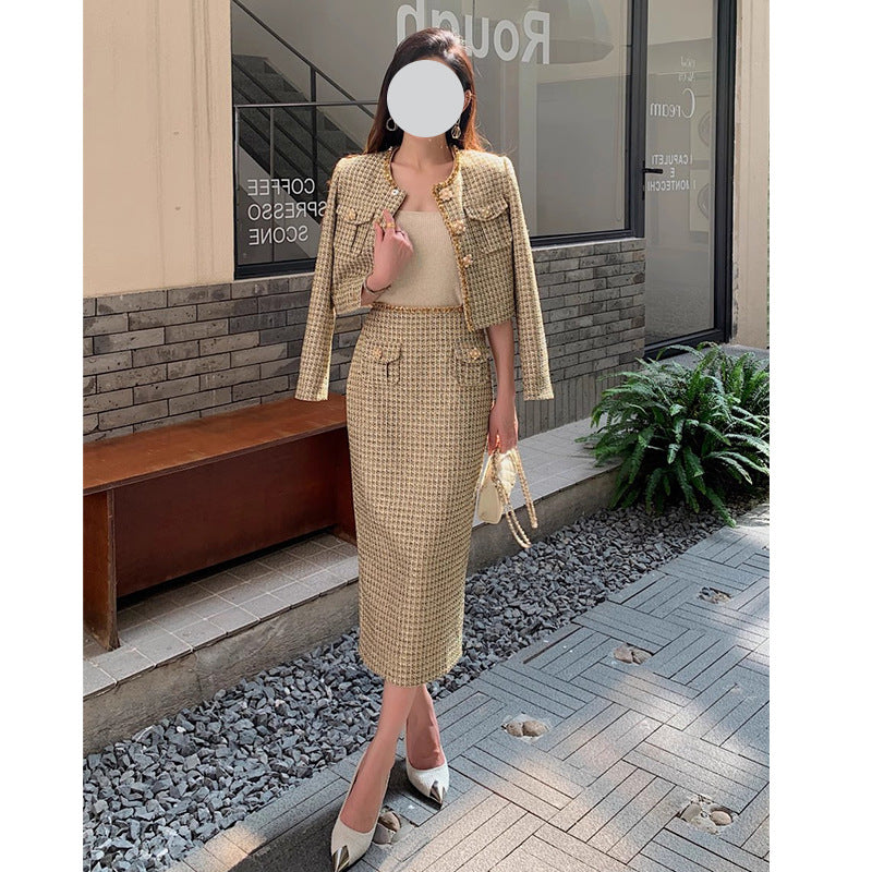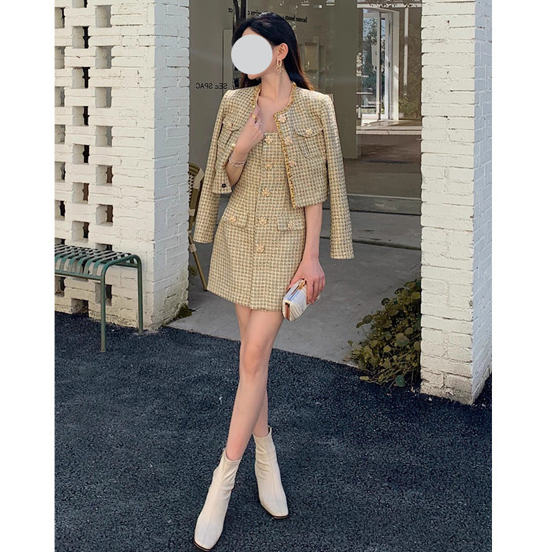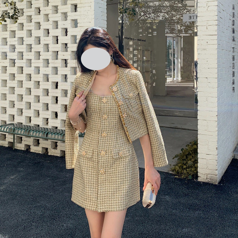 Dadizhimu Small Fragrant Fashion Temperament French Long-Sleeved Coat Vest Dress Dress Half Dress Small Fragrant Suit Woman