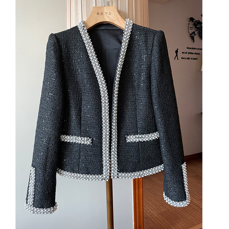 Dadizhimu Small Fragrant Wind! Heavy Industry Nails Fashion Temperament Cane Coarse Flowers Commuting OL Hair Blazer Woman