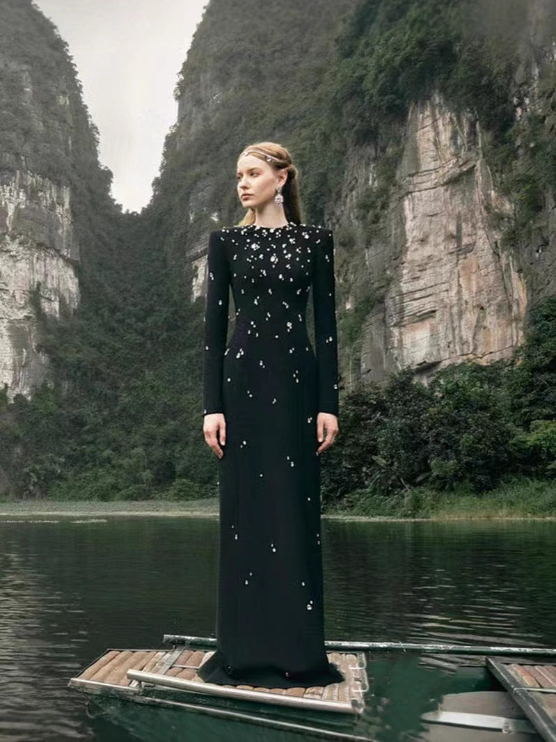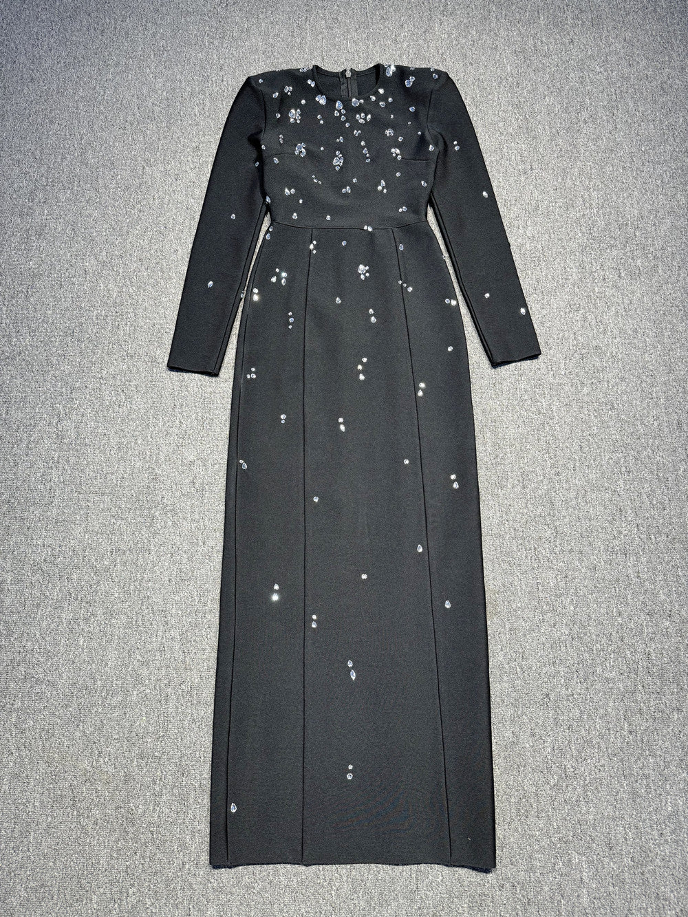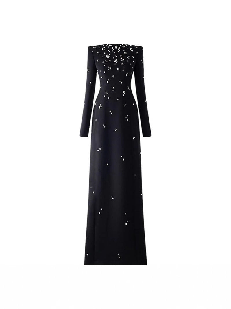 Dadizhimu Star Temperament Elegant Heavy Industry Nails And Studded Long Sleeve Dress With Long Sleeve Dress