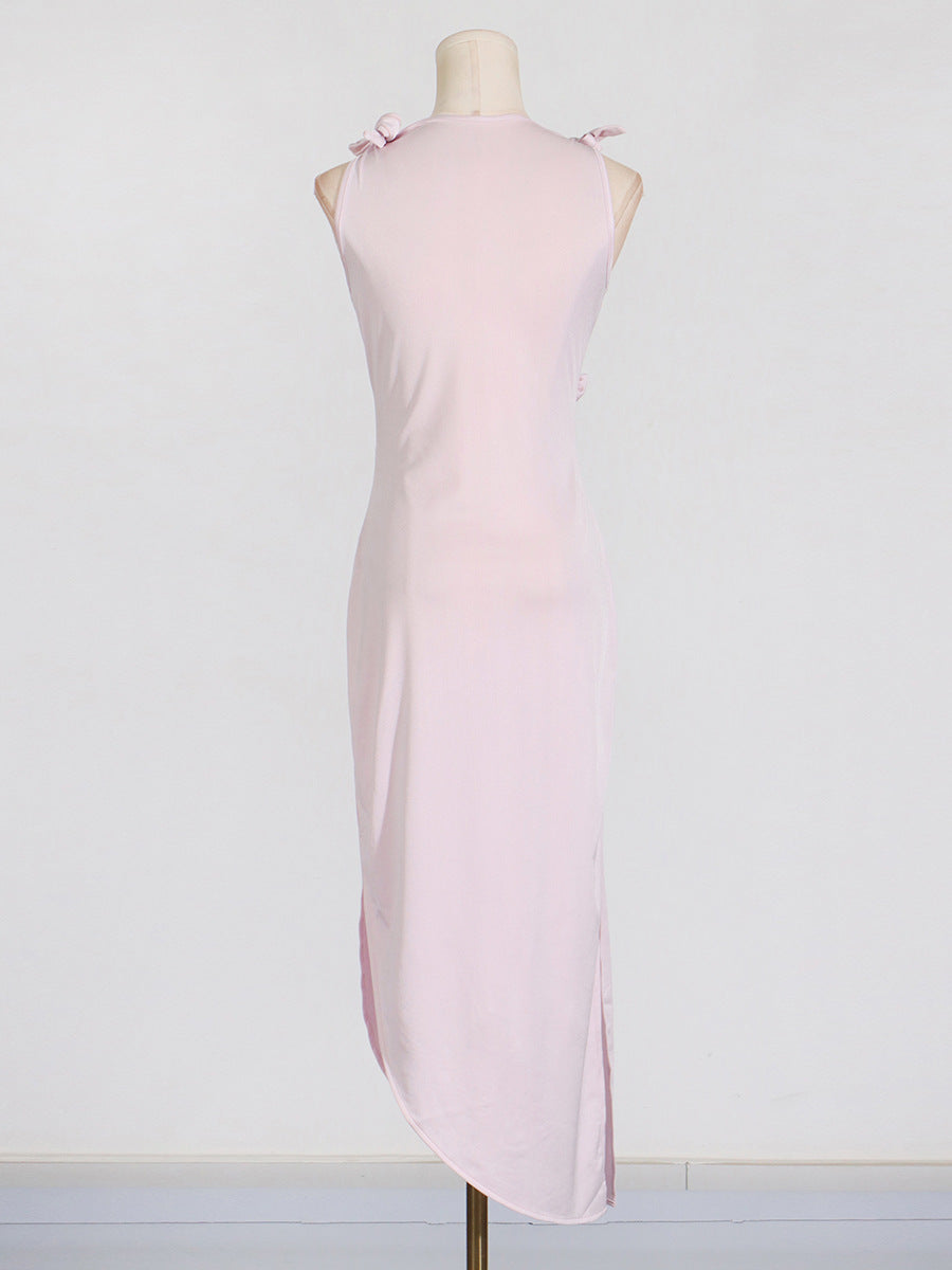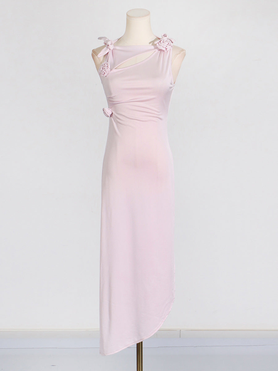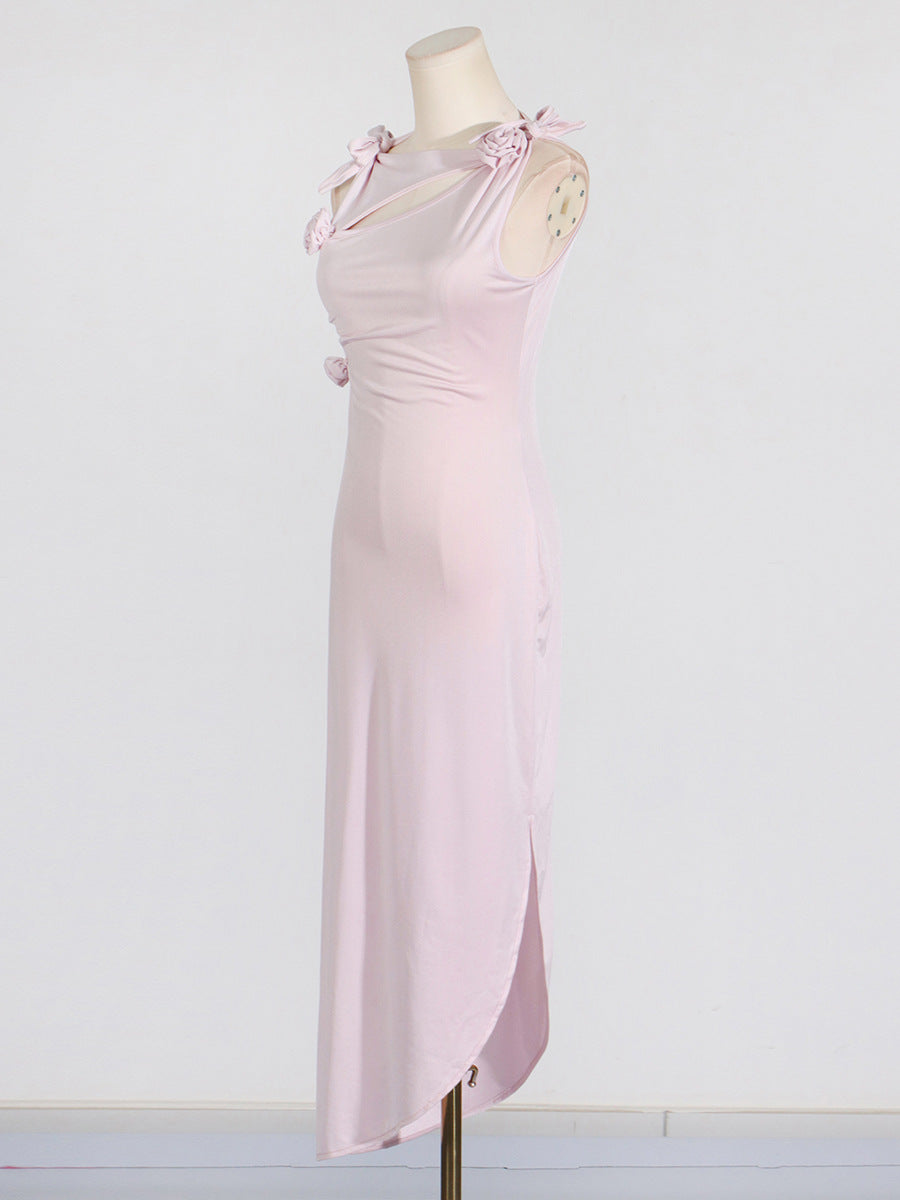 Dadizhimu Style Style Sleeveless Dress 2025 New Irregular Splicing Three-Dimensional Flowers Long Open Fork Dress Woman