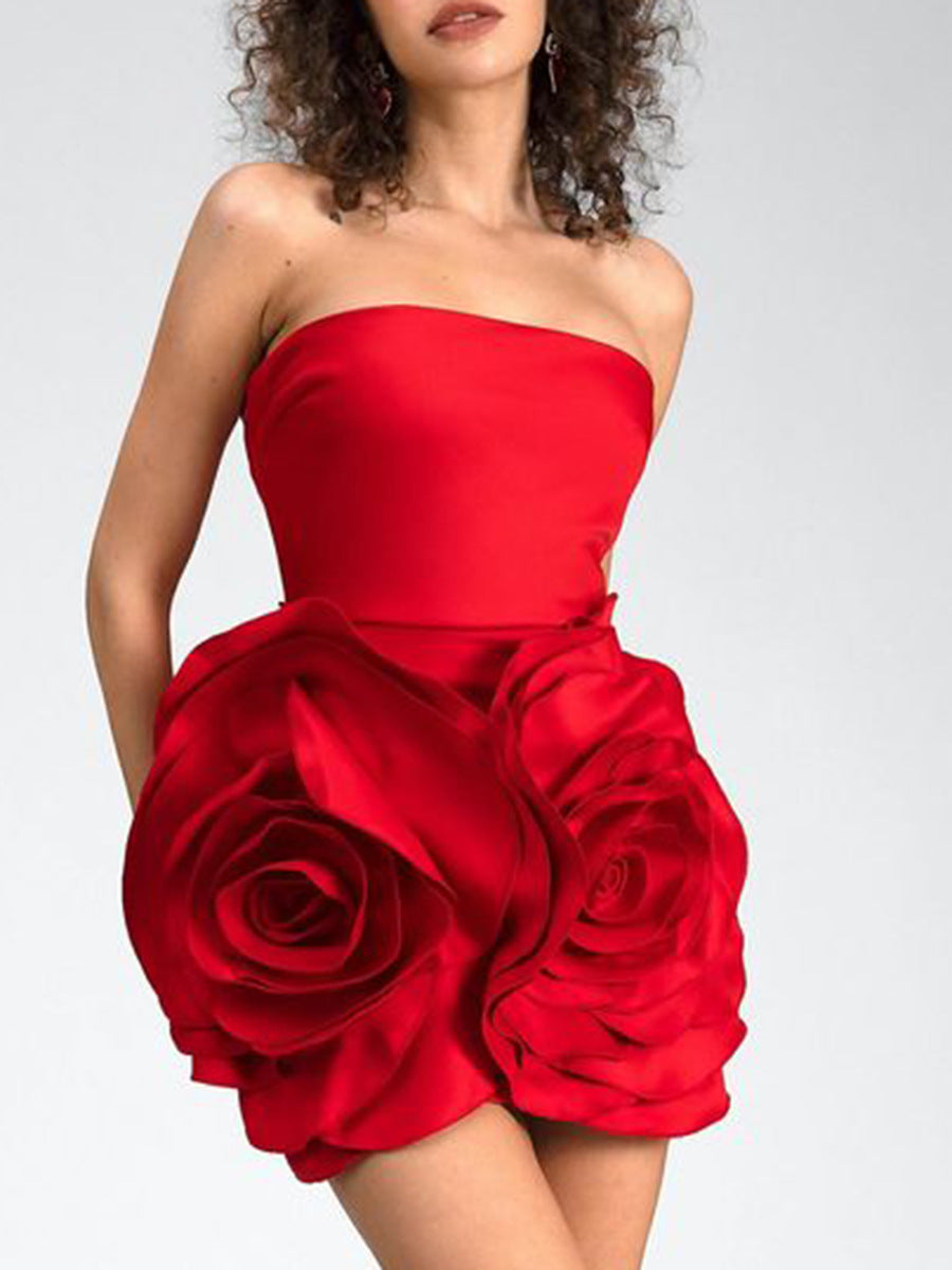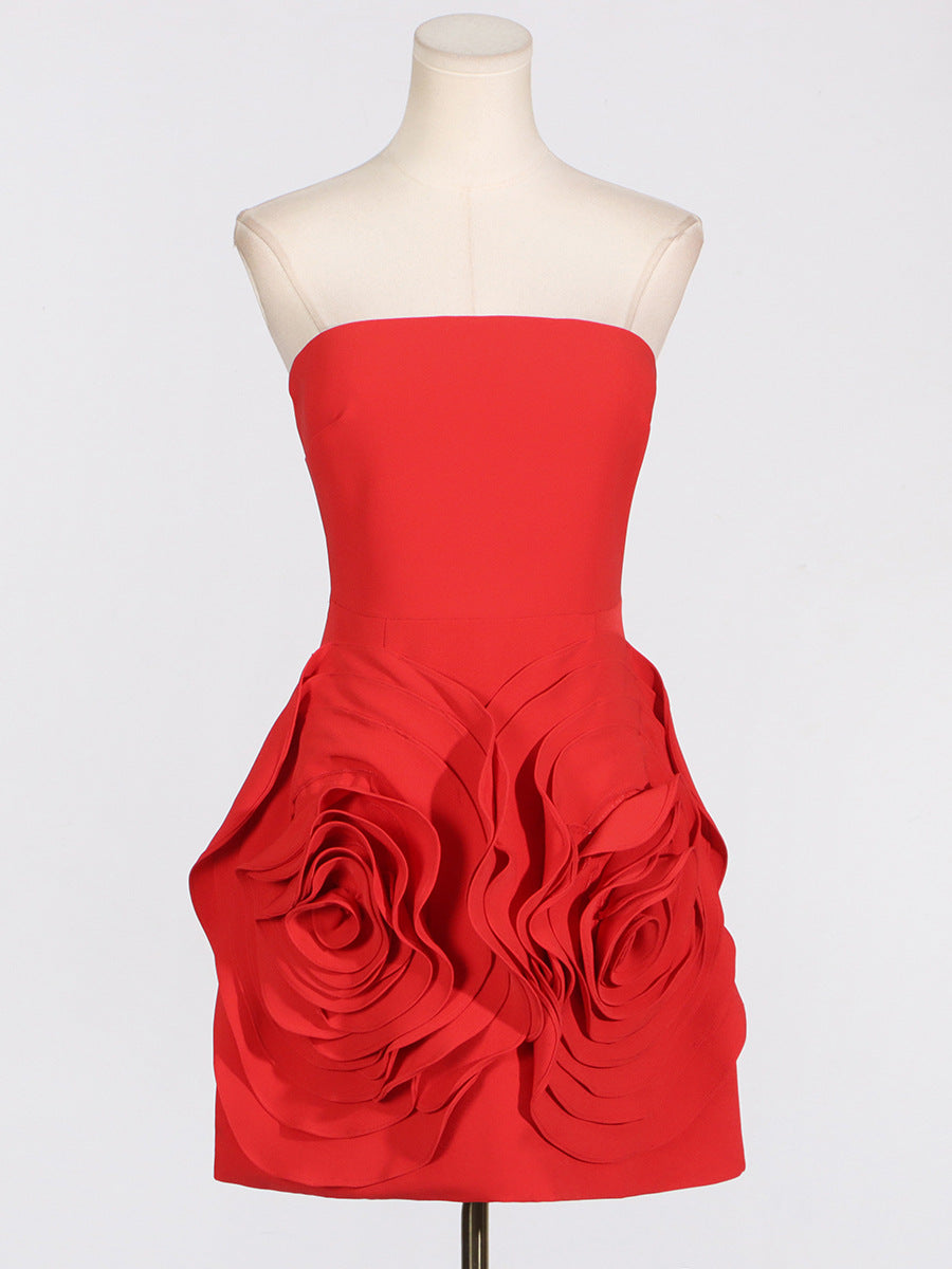 Dadizhimu Temperament Sexy Dinner Dress Dress 2025 New Fashion Tsets Three-Dimensional Rose Flower Dress