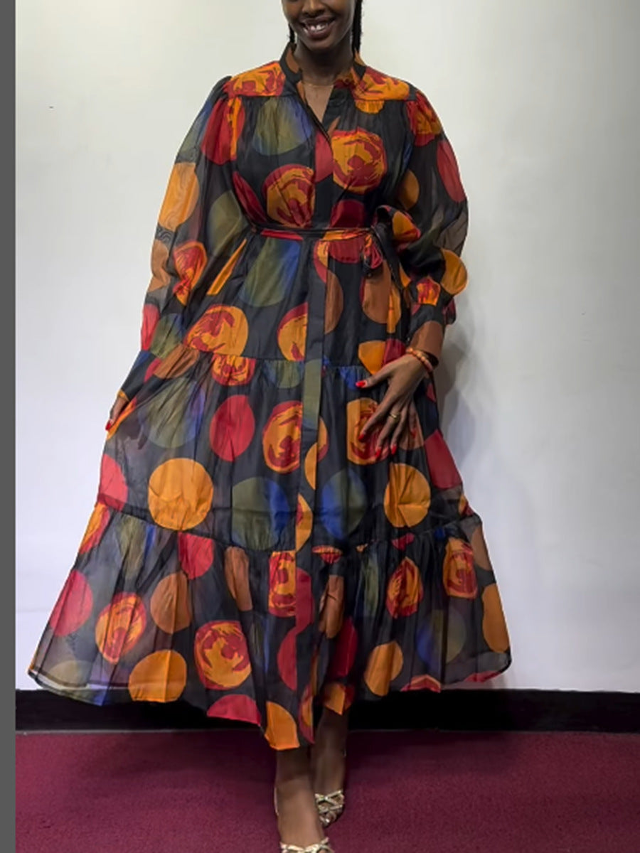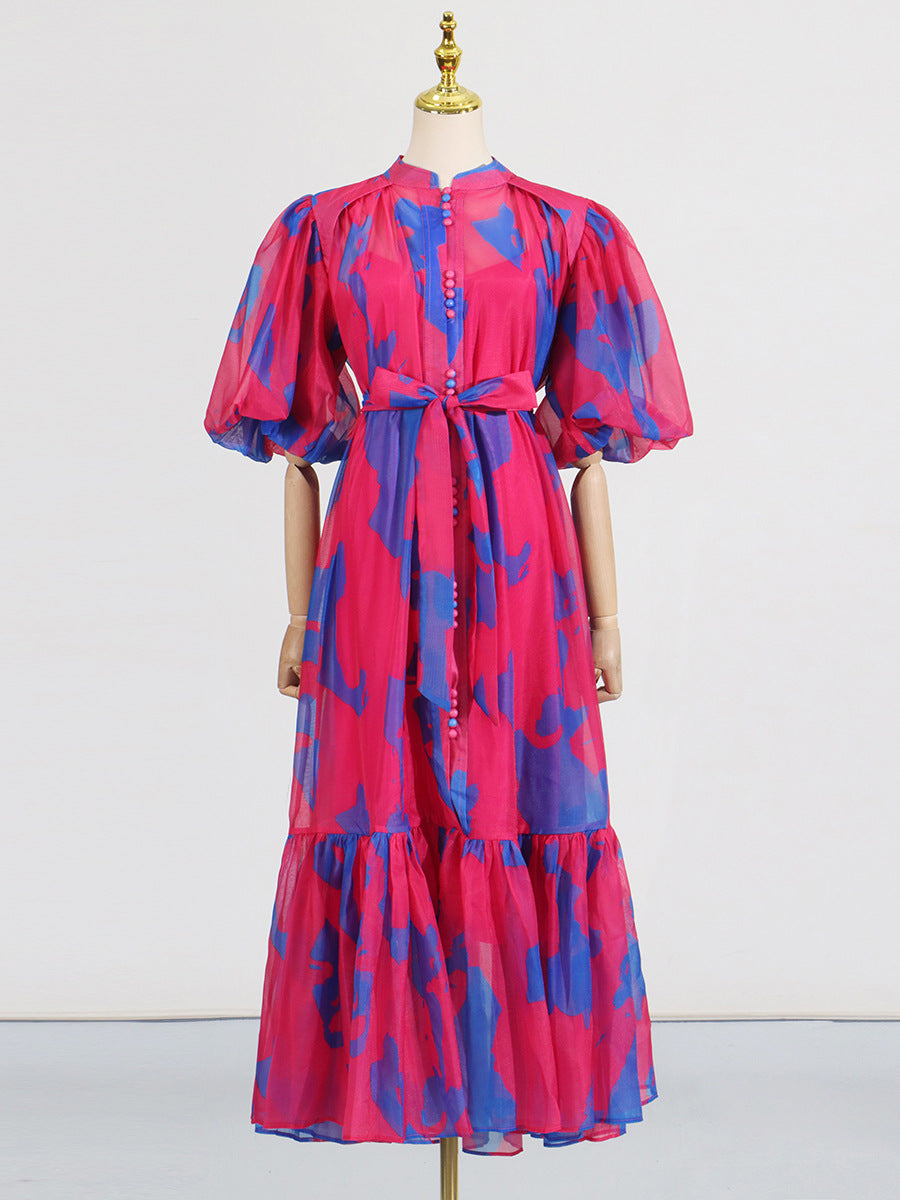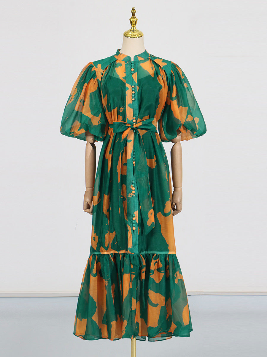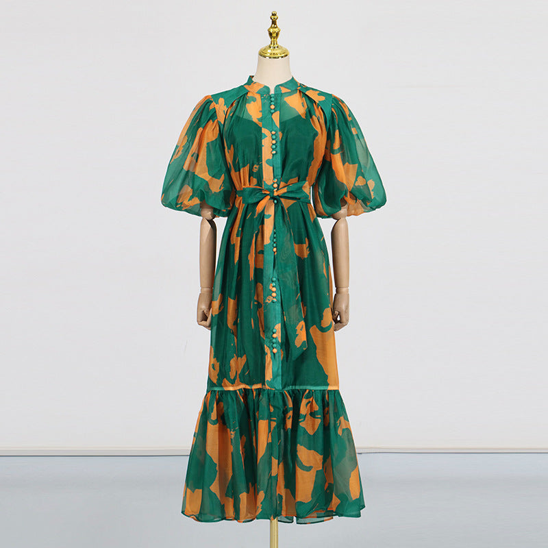 Dadizhimu Wind Mesh Dress 2025 New Printing Design Tice With Waist Display Lanky Dress Dress Women's Summer