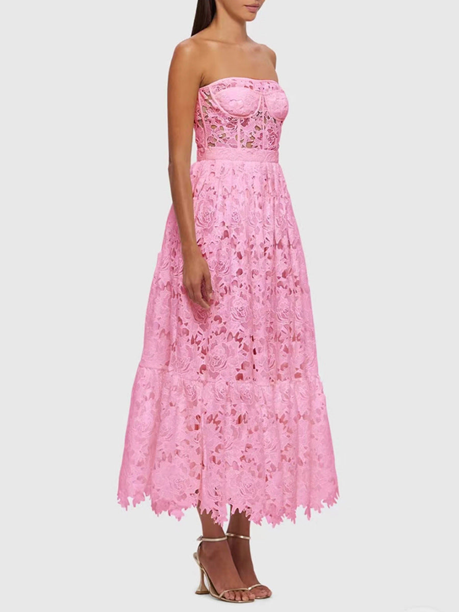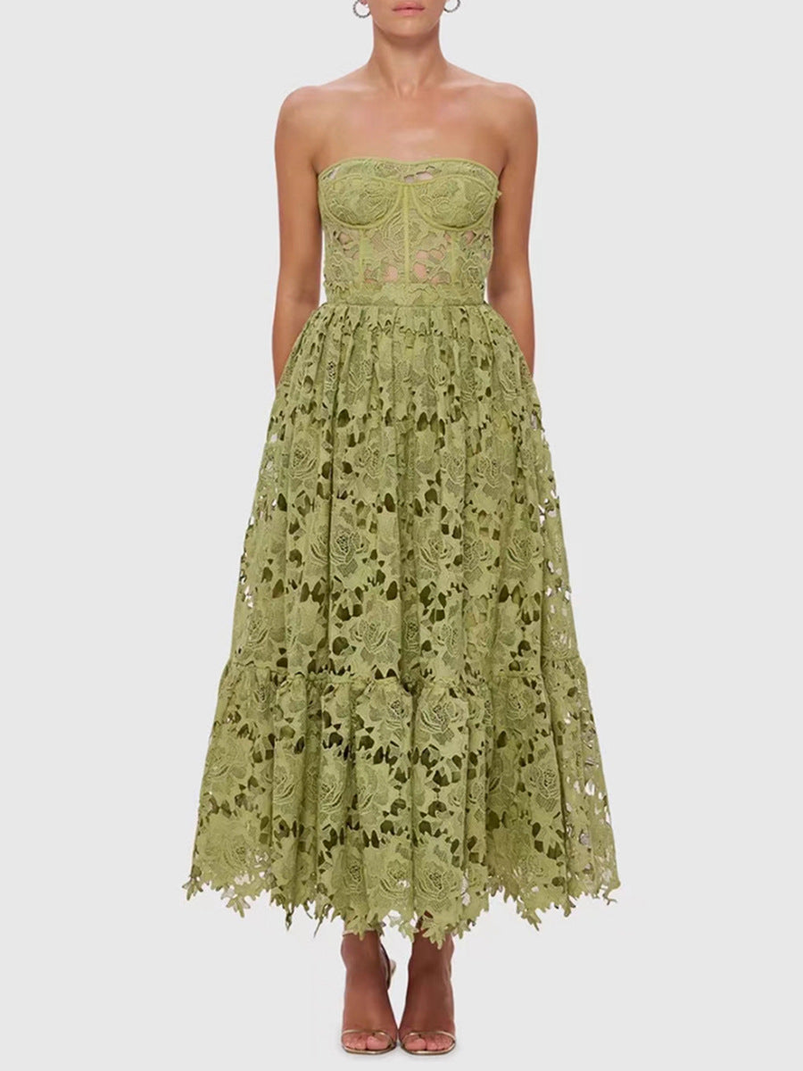 Dadizhimu Wind Solid Color Palette Long Dress 2025 New Niche Design Embroidery Hooked Waist Thin Dress Dress Woman