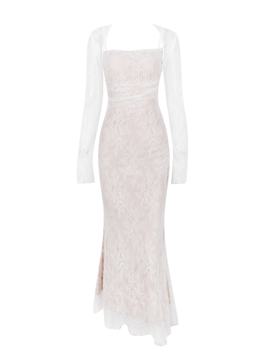 Dadizhimu Women's Autumn New Lace Shawl Sling Dress Two Sets Of Temperament Long-Sleeved Dress Fishtail Skirt