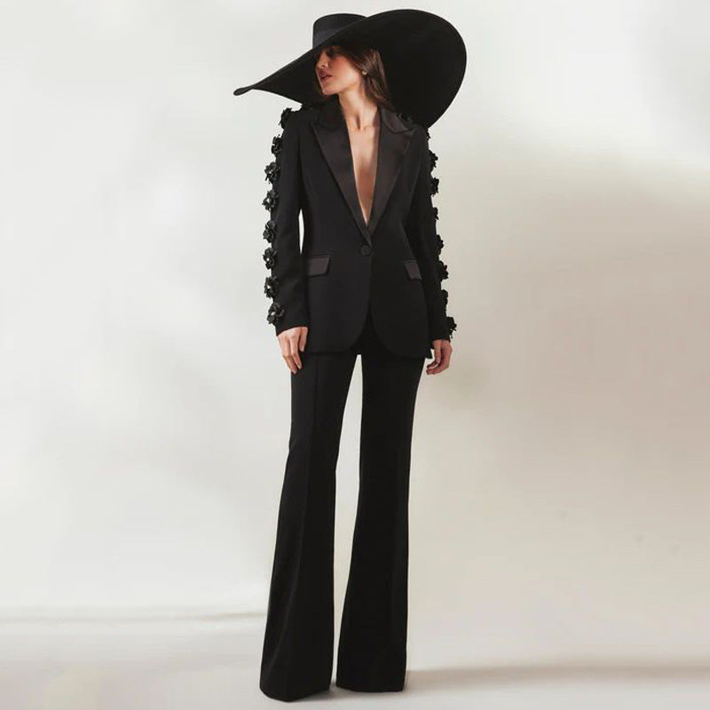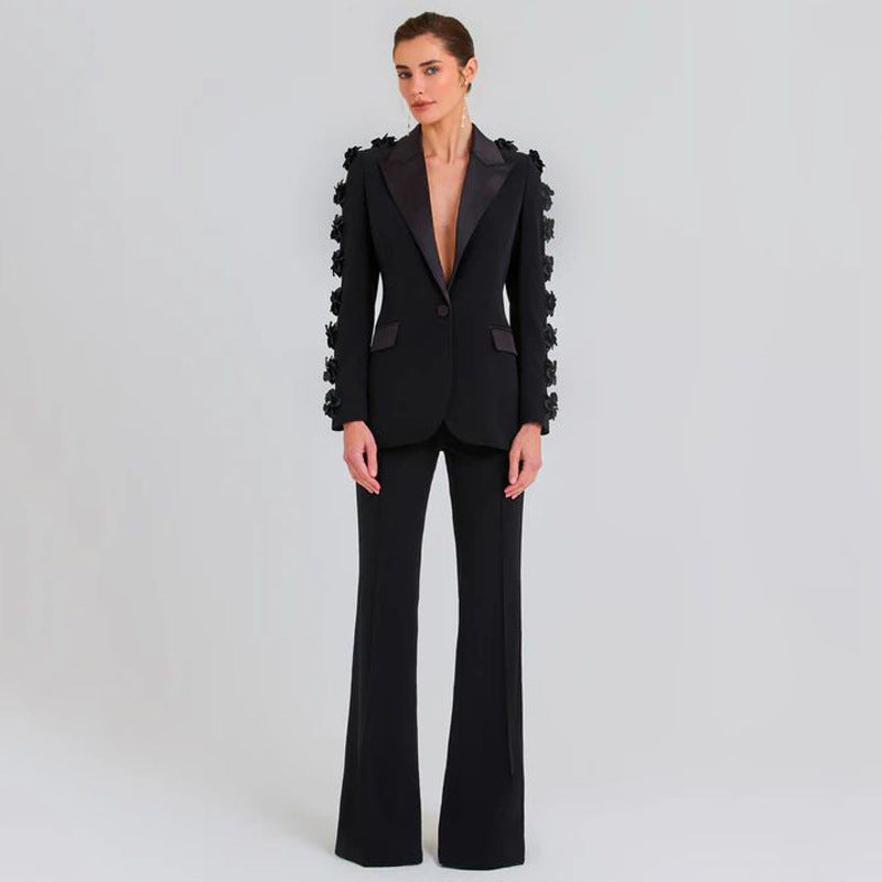 Dadizhimu Fashion High-End Suit Decorated Flower Set Women's Party Dress Trousers Two Sets