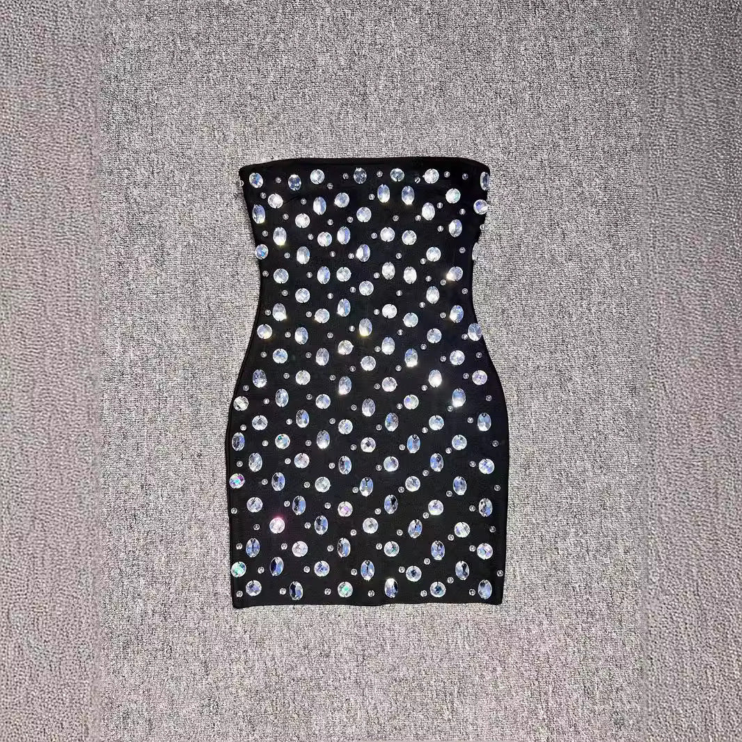 Dadizhimu Industry Bandage Dress Sexy Bra Slit Nail Beads Bodyed And Hip Dress Birthday Party Dress