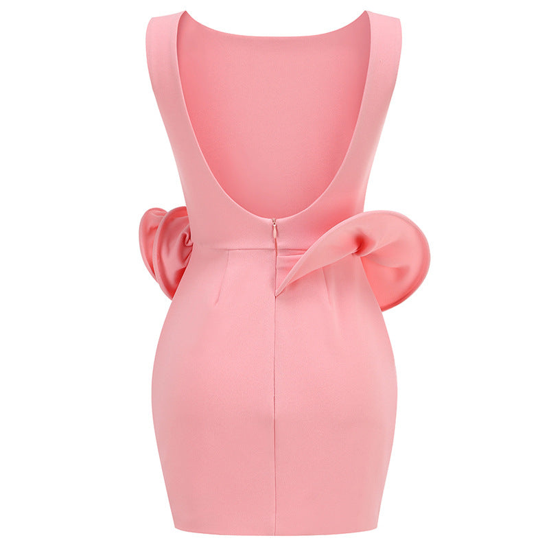Dadizhimu Three-Dimensional Flower Party Dress Short Dress Women's Sexy Pink Bare Sleeveless Dress