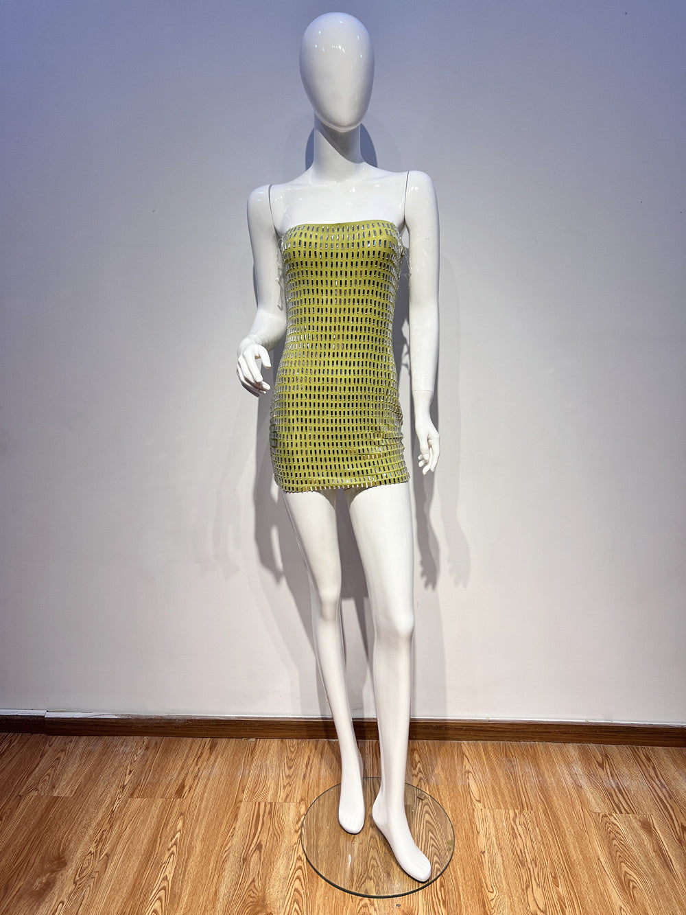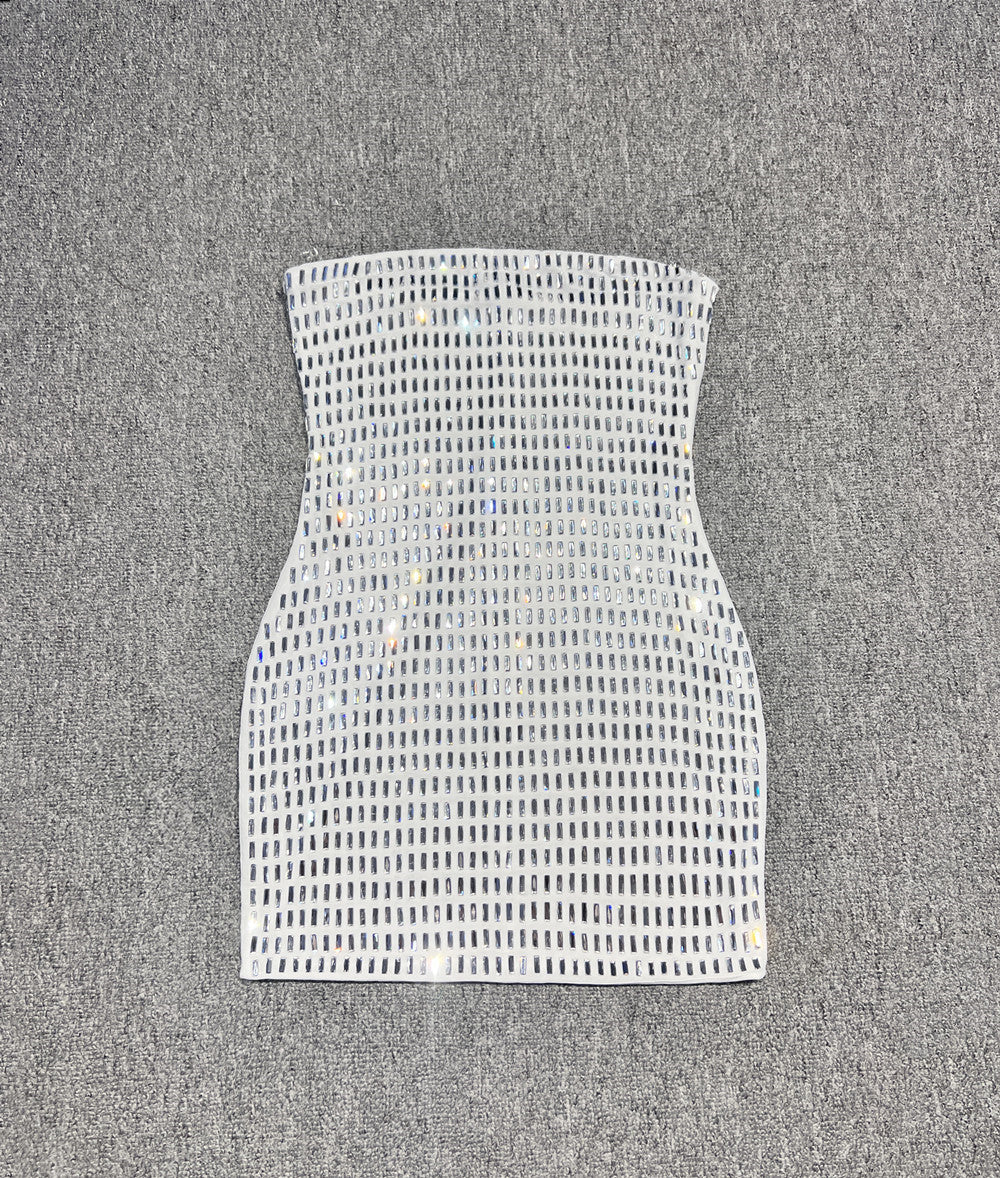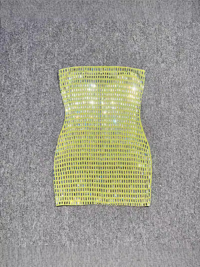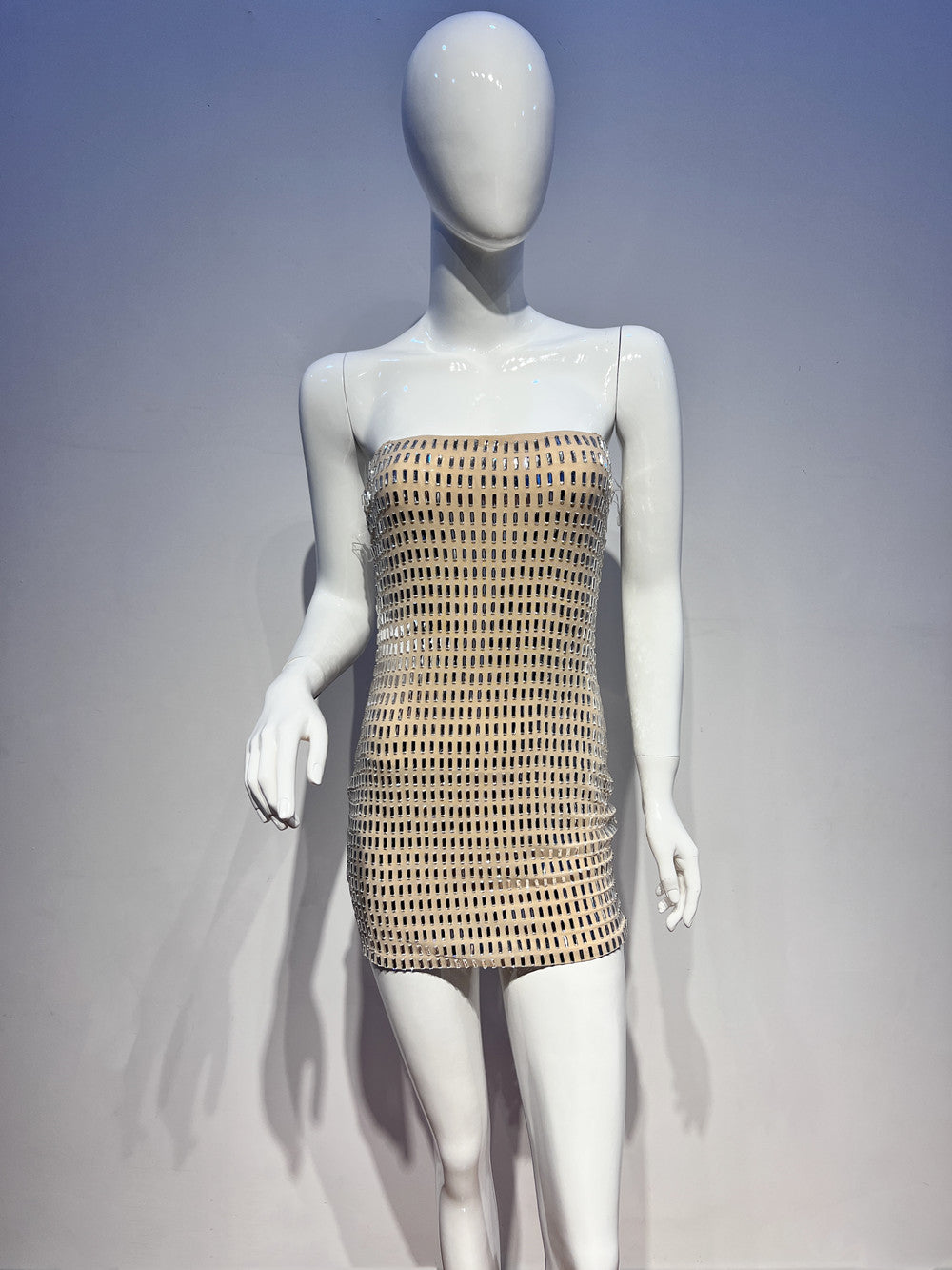 Dadizhimu Water Drill Elastic Mesh Short Corset Dress Stylish Hot Party Dinner Dress