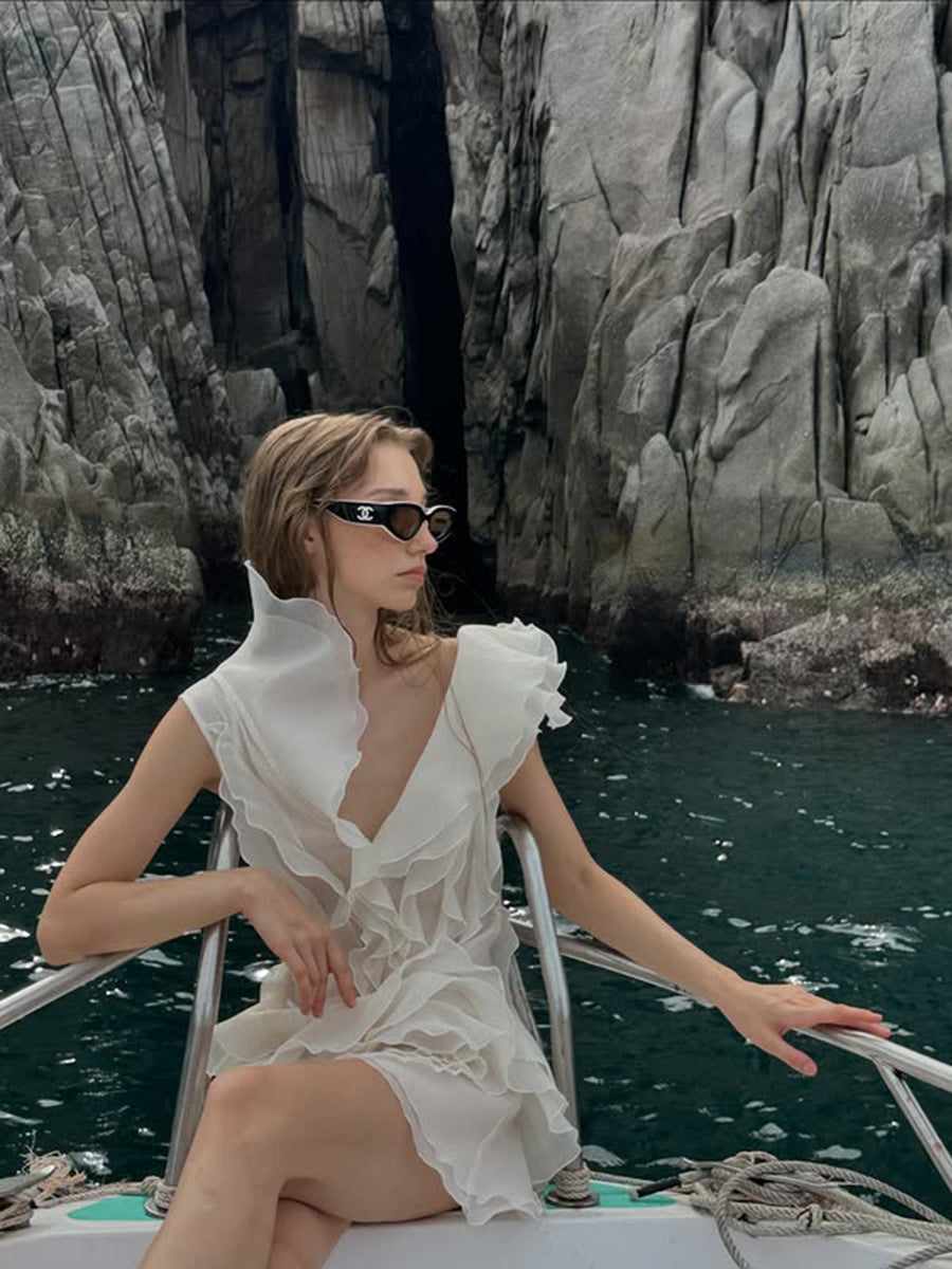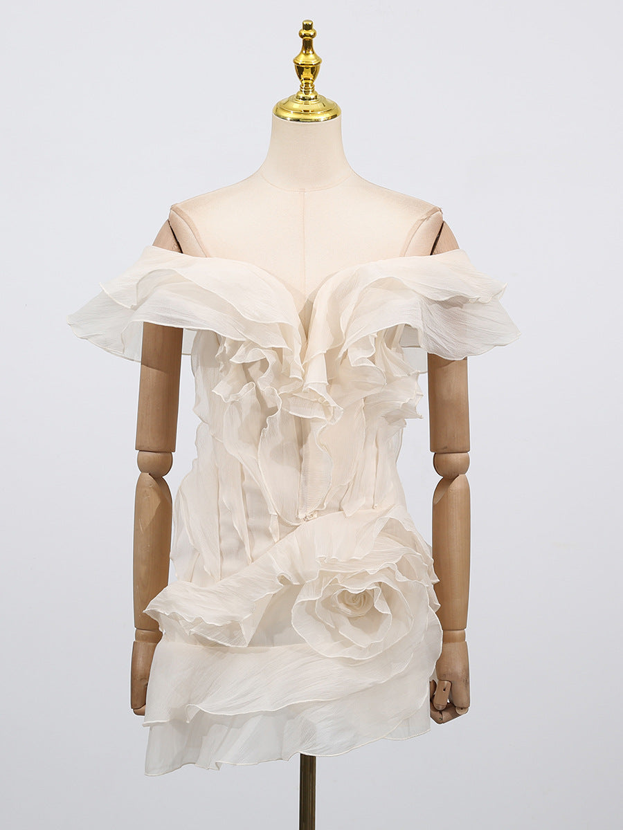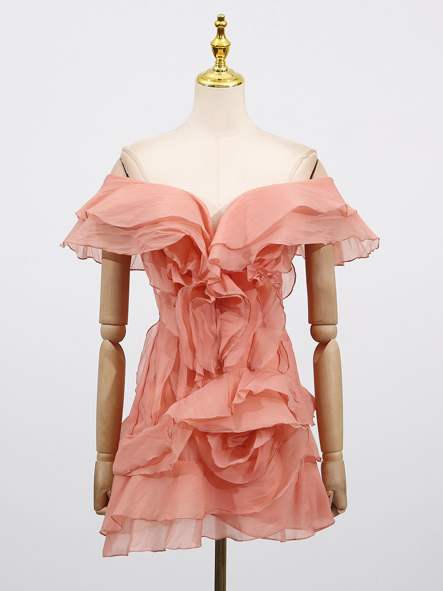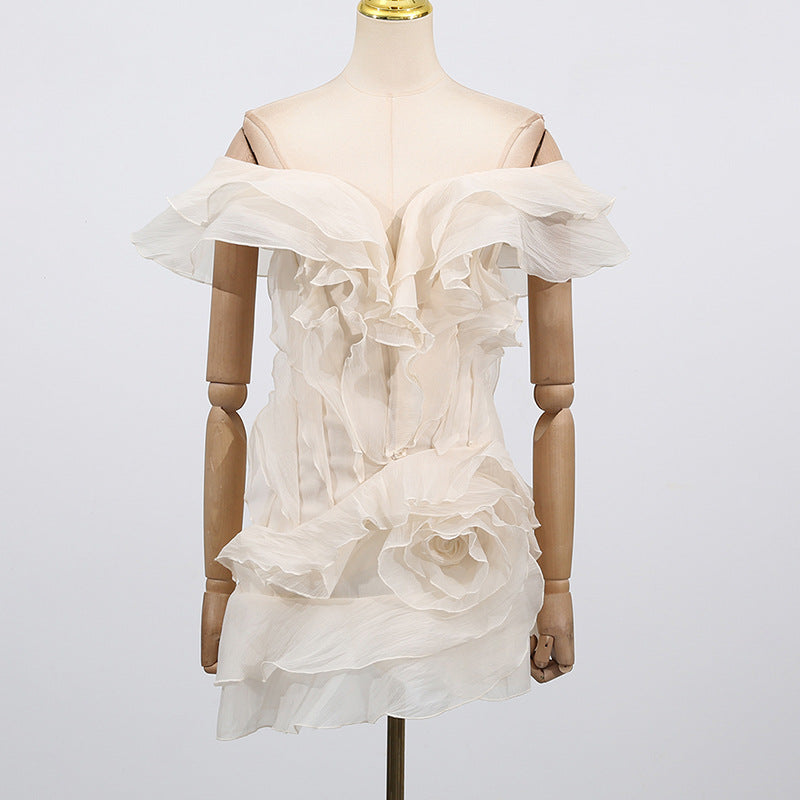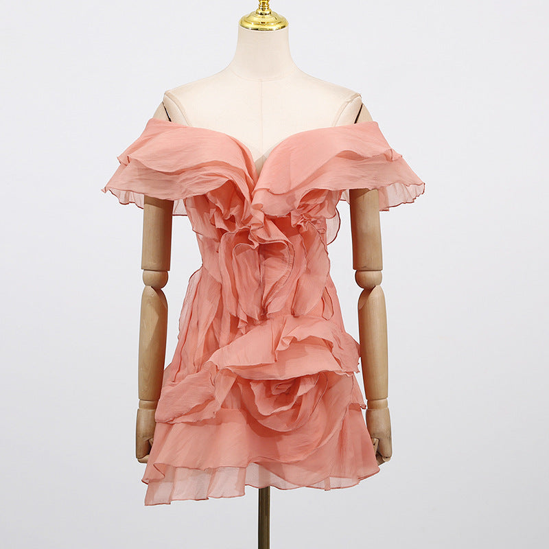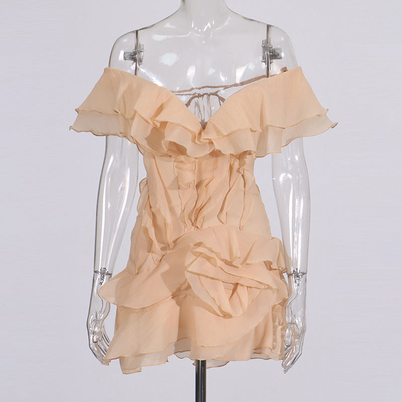 Dadizhimu Lotus Side Shoulder Short-Sleeved Dress Women 2025 Summer Sweet Flying Flying Sleeve Skirt Bag Hip Skirt