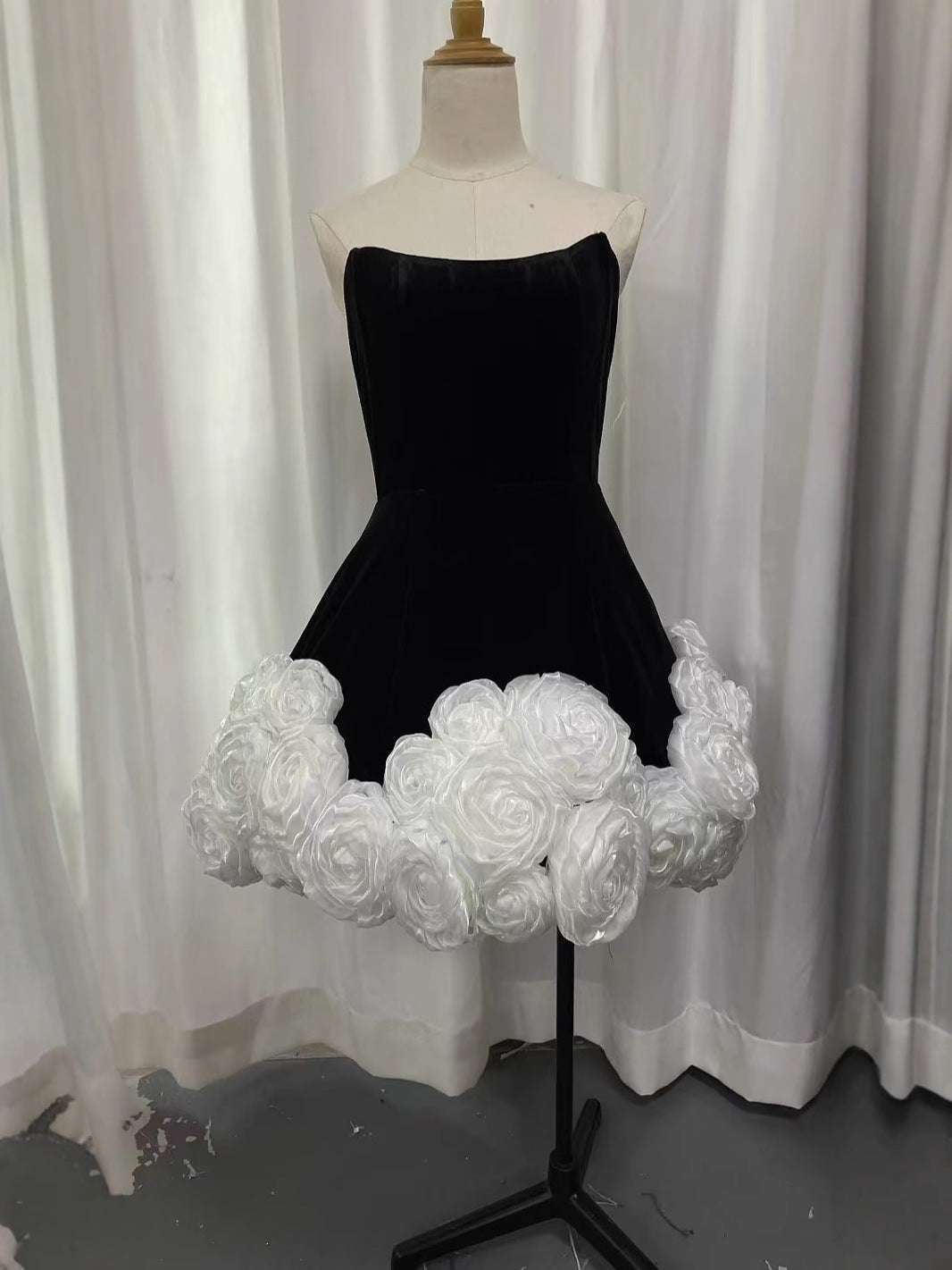 Dadizhimu 2024 Early Autumn New Breast-Wear Three-Dimensional Flower Fluffy Dress French Dress Dress