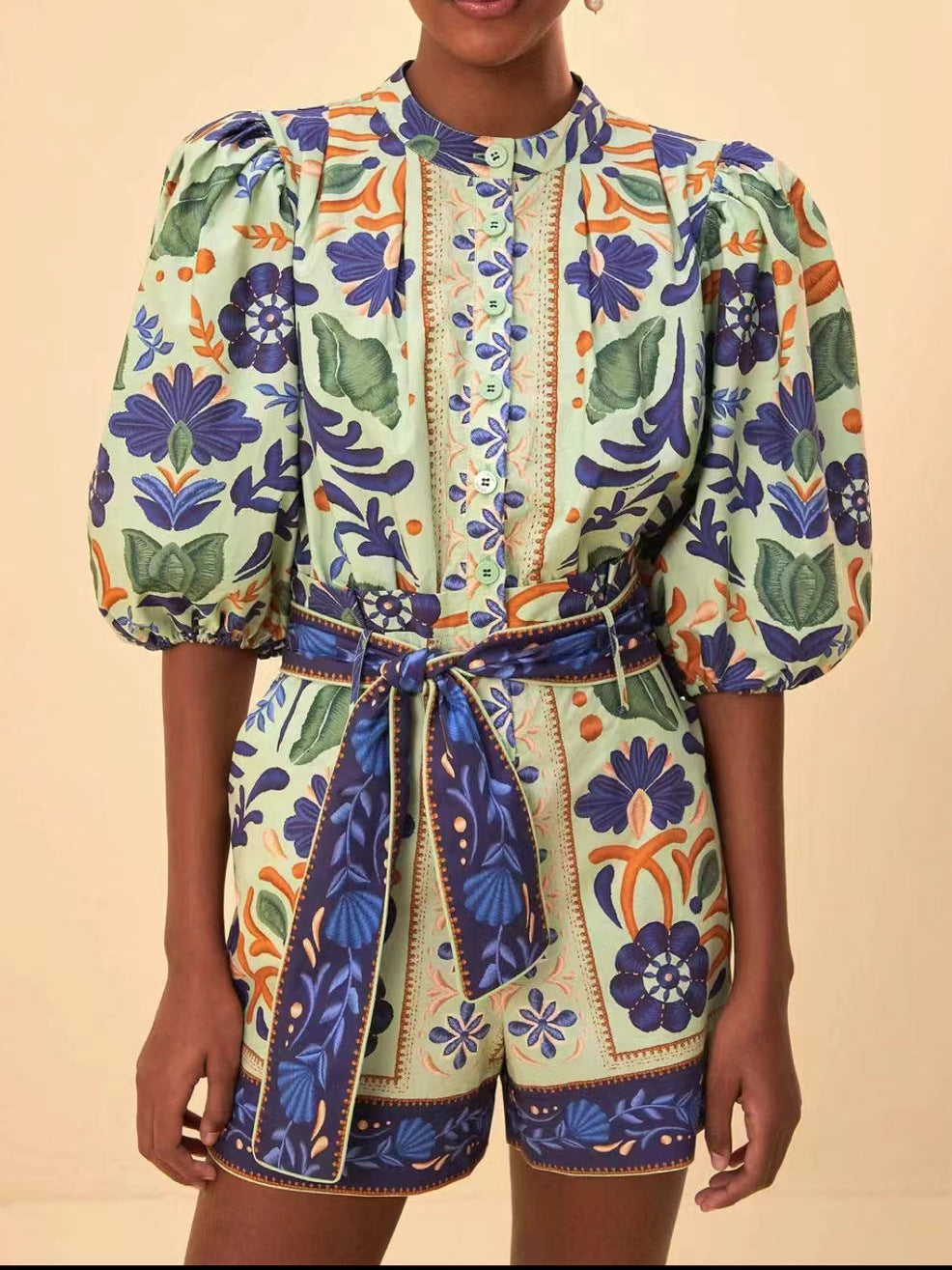 Dadizhimu 2024 New Bubble Sleeves Shorts Vintage Sicilian Shorts Set Women's Clothing