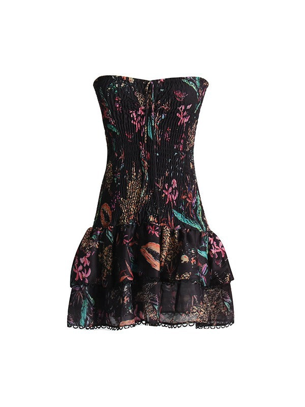 Dadizhimu 2025 New Fashion Temperament Print Hanging Neck Design Slim Slim Short Dress Women's Bag Hip Dress