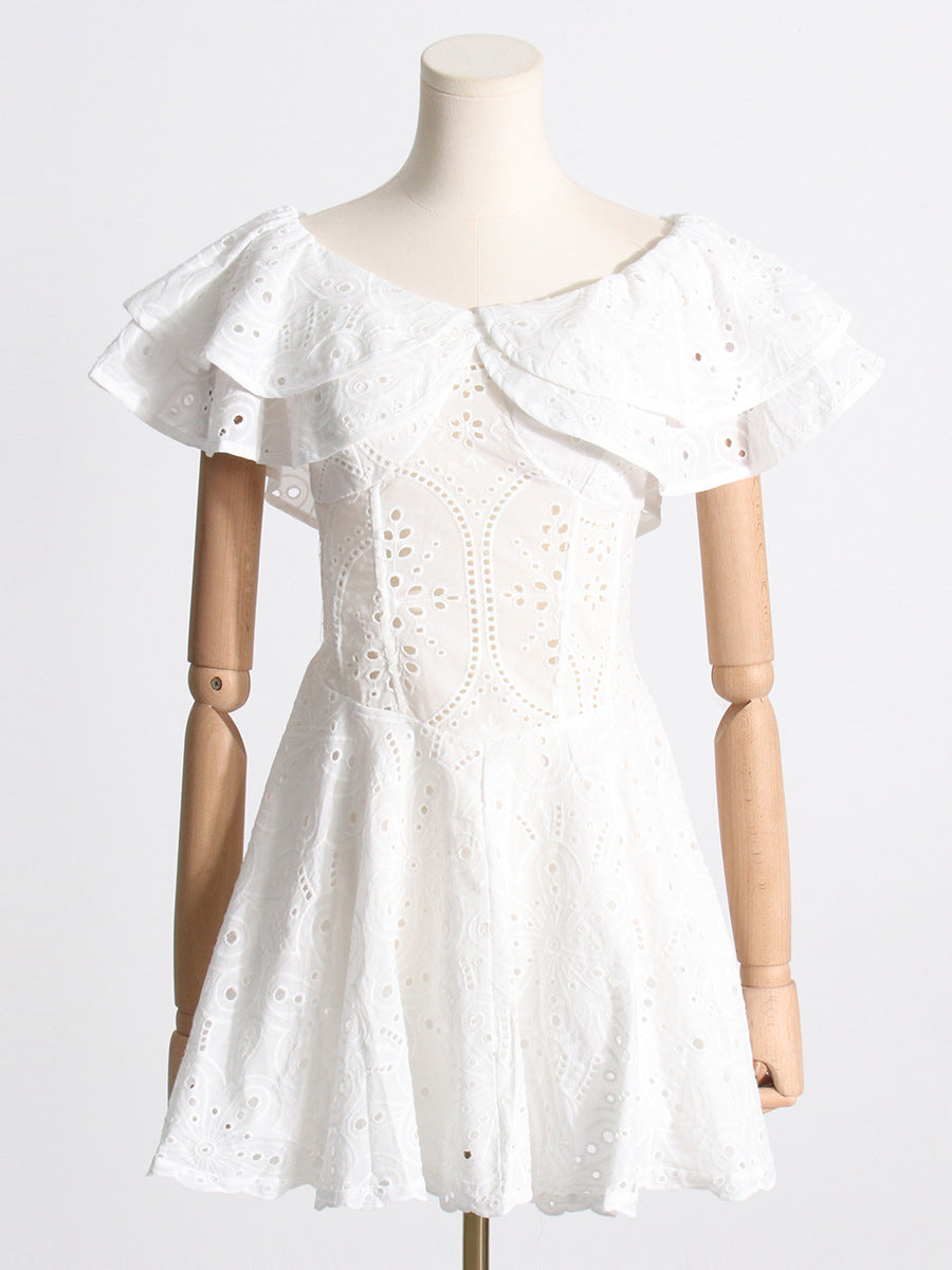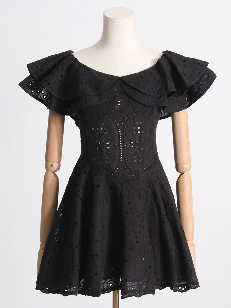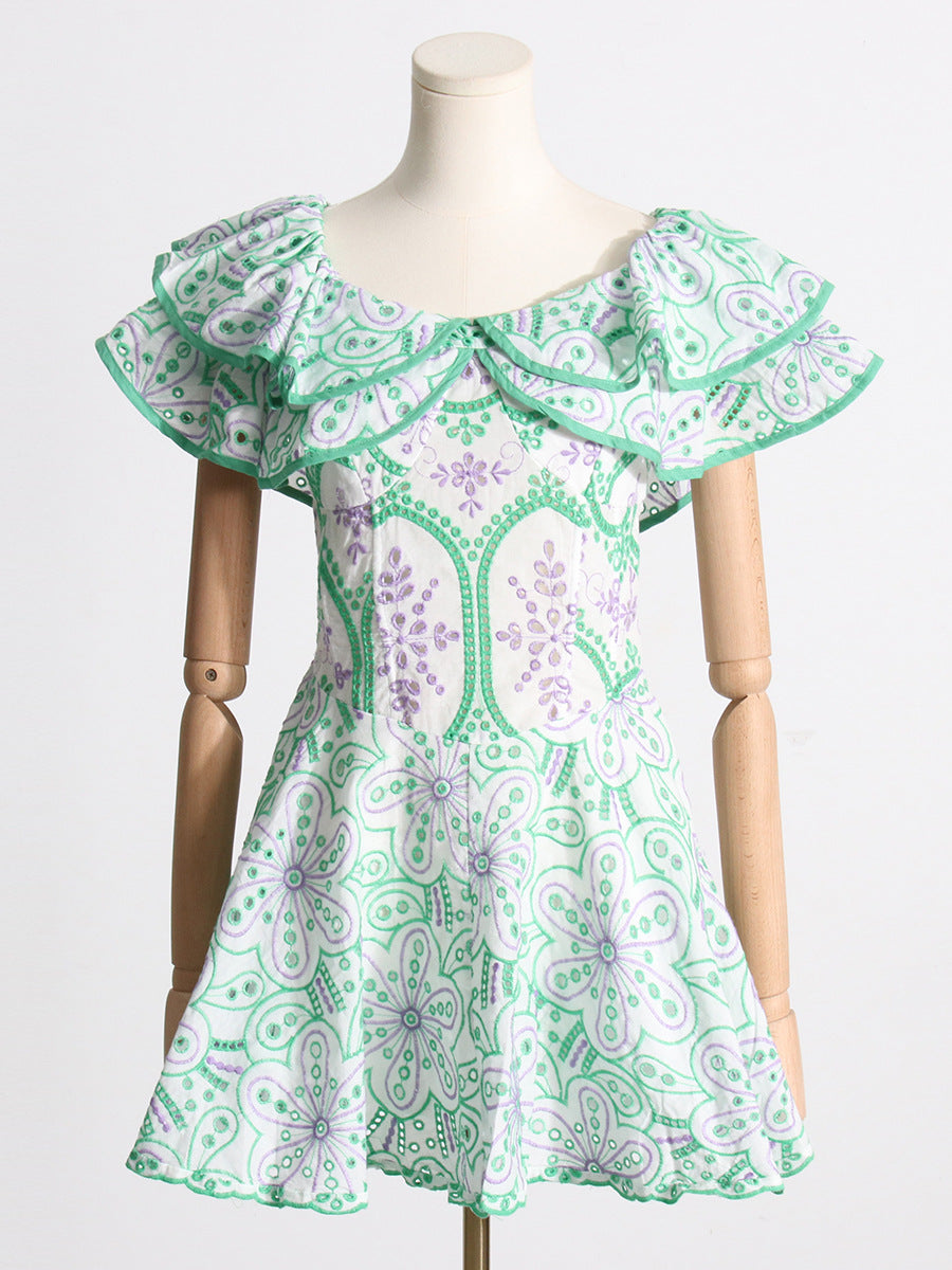 Dadizhimu 2025 New High-End Feeling Shoulder Lotus Leaf Embroidery Waist Thin Holiday Dress Dress Dress Dress Woman