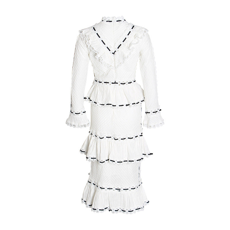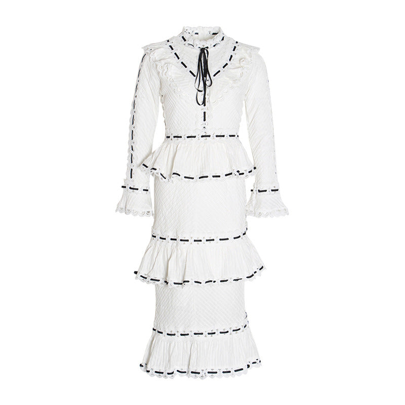 Dadizhimu 2025 Spring New Fashion Retro Heavy Industry Hooked Collared 100 Folded Cake Dress With Long Sleeves On The Side Of The Leaves