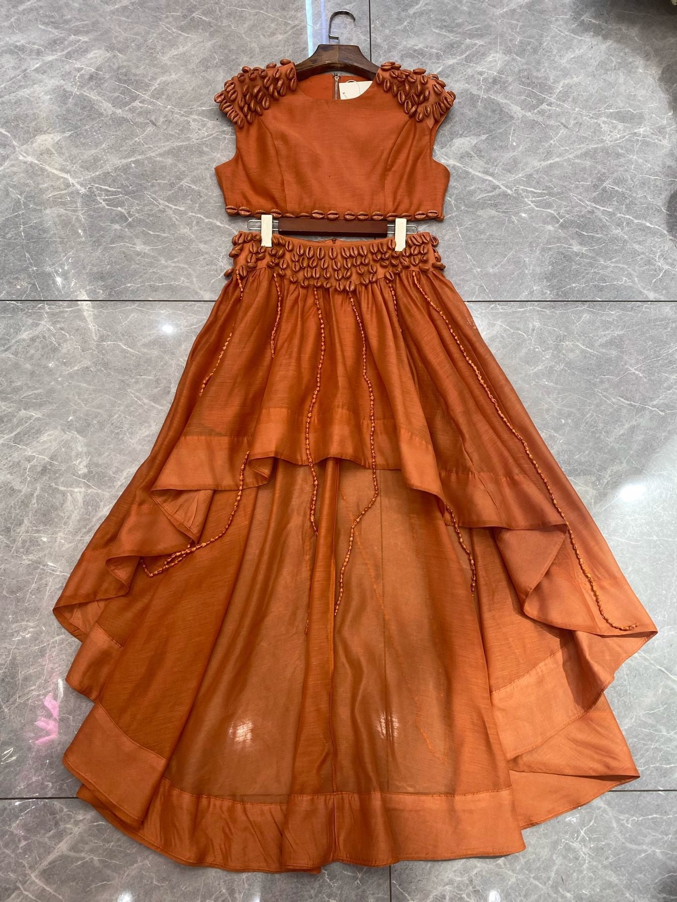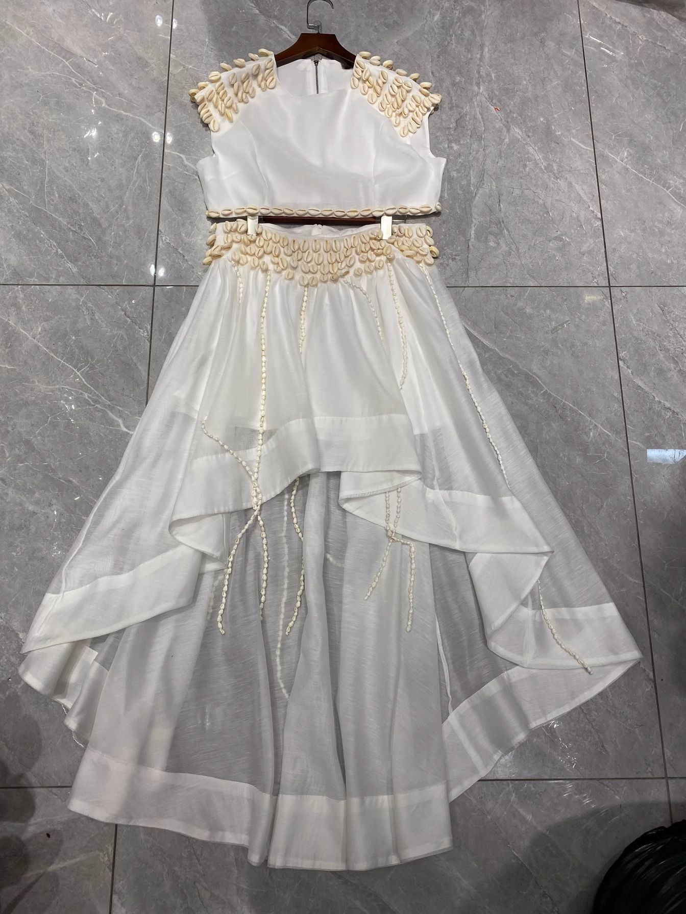 Dadizhimu And Summer Heavy Industry Shell Decoration Top + High Waist Skirt Set