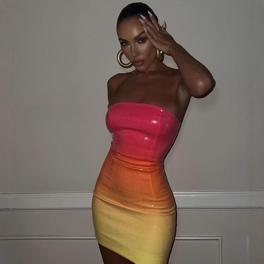 Dadizhimu And Winter New Breast-Threa Rainbow Gradient Coloring Sequining Dating Tour To Take Pictures Of The Graduation Season Dress Famous Evening Dress